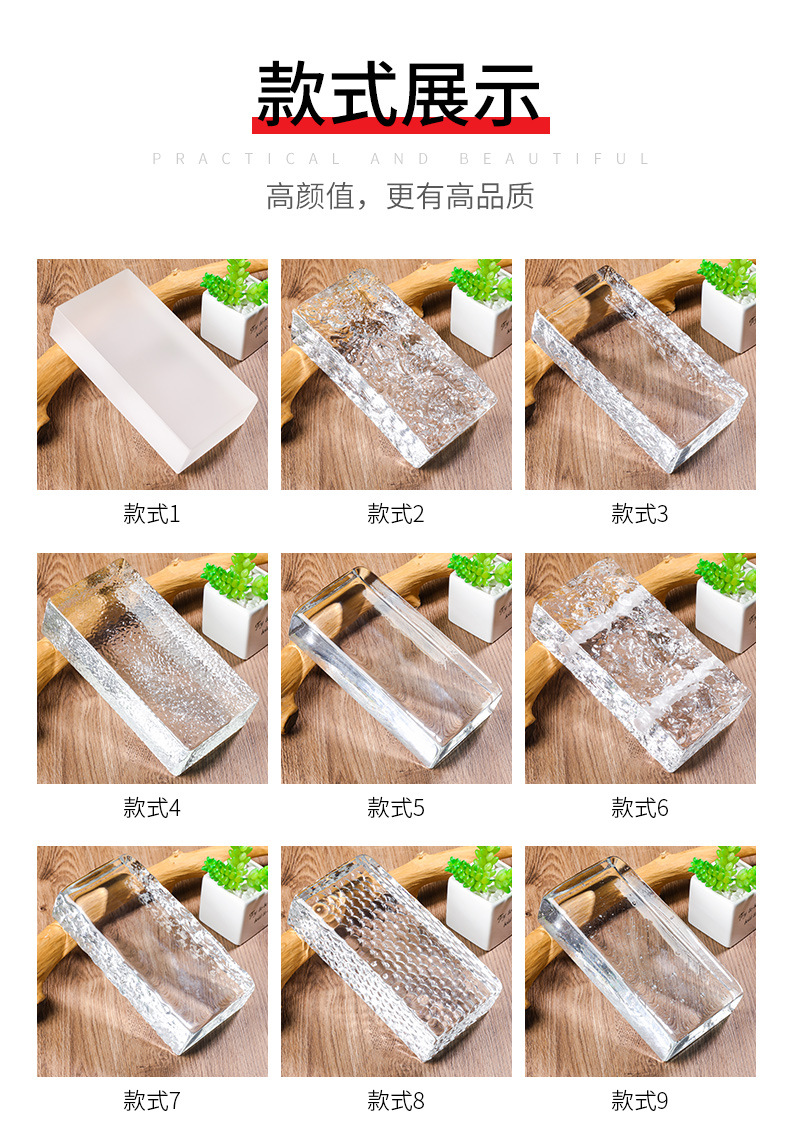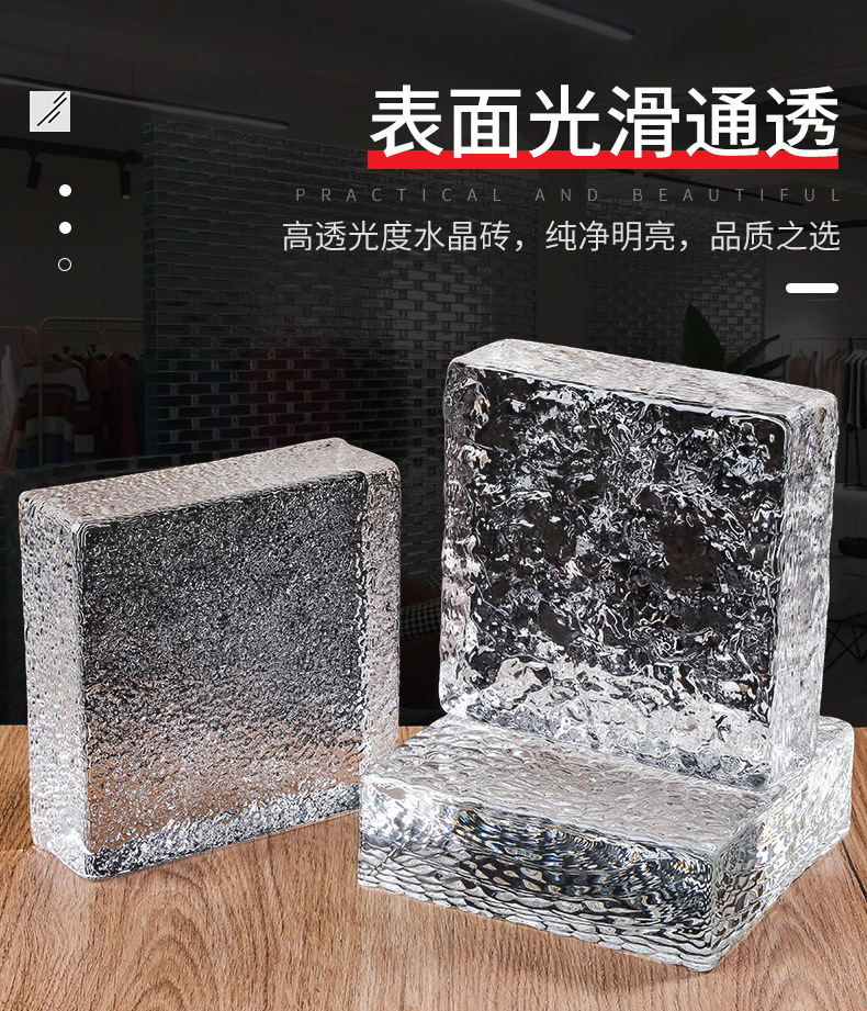 超白中実水晶ガラス煉瓦透明方形氷影紋水晶煉瓦仕切り壁トイレカラー仕切り煉瓦