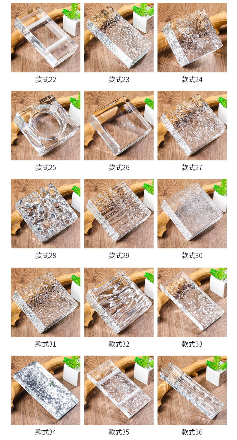 仕様 デザイン1 (側面氷晶),デザイン2 (両面氷晶),デザイン3(精研精研),スタイル4 (両面氷晶パンチ),スタイル5 (光沢面熱),デザイン6 (オレンジの皮),スタイル7 (蒸気泡ホットメルトレンガ),スタイル8(蜂蜜レンガ),デザイン9 (側面氷晶),デザイン11 (ダイヤモンド模様ガラス煉瓦),デザイン12 (両面氷晶フロストレンガ),デザイン13 (バブルレンガ),デザイン14 (精練気泡煉瓦),スタイル15 (スロット付き両面氷結晶),デザイン17 (片面氷晶),スタイル18(精磨透明煉瓦),スタイル19 (サイドパンチレンガ),デザイン20 (光沢面直角ホットメルト回転),スタイル21 (はちみつレンガ),スタイル22 (両面タイル),スタイル24 (精練パンチレンガ),デザイン25 (両面氷晶),デザイン26 (光沢面ホットメルトタイル),スタイル27 (太陽紋タイル),デザイン28 (オレンジの皮のタイル),デザイン29(波紋のタイル),デザイン30(泡タイル),デザイン31(溥片片面氷晶),デザイン32 (波紋タイル),デザイン33 (ハニカムタイル),デザイン34 (氷晶長条),デザイン35(溥片片面氷晶パンチング),デザイン36 (銀メッキ溥片),デザイン37 (オレンジ皮長条),デザイン38 (龍紋長条),デザイン39 (龍紋長条打孔),スタイル40 (両面アイスクリスタル),デザイン41 (バブル精練長条),デザイン42 (氷晶長条パンチレンガ,デザイン44 (気泡波紋パンチ,デザイン45 (精練透明長条)