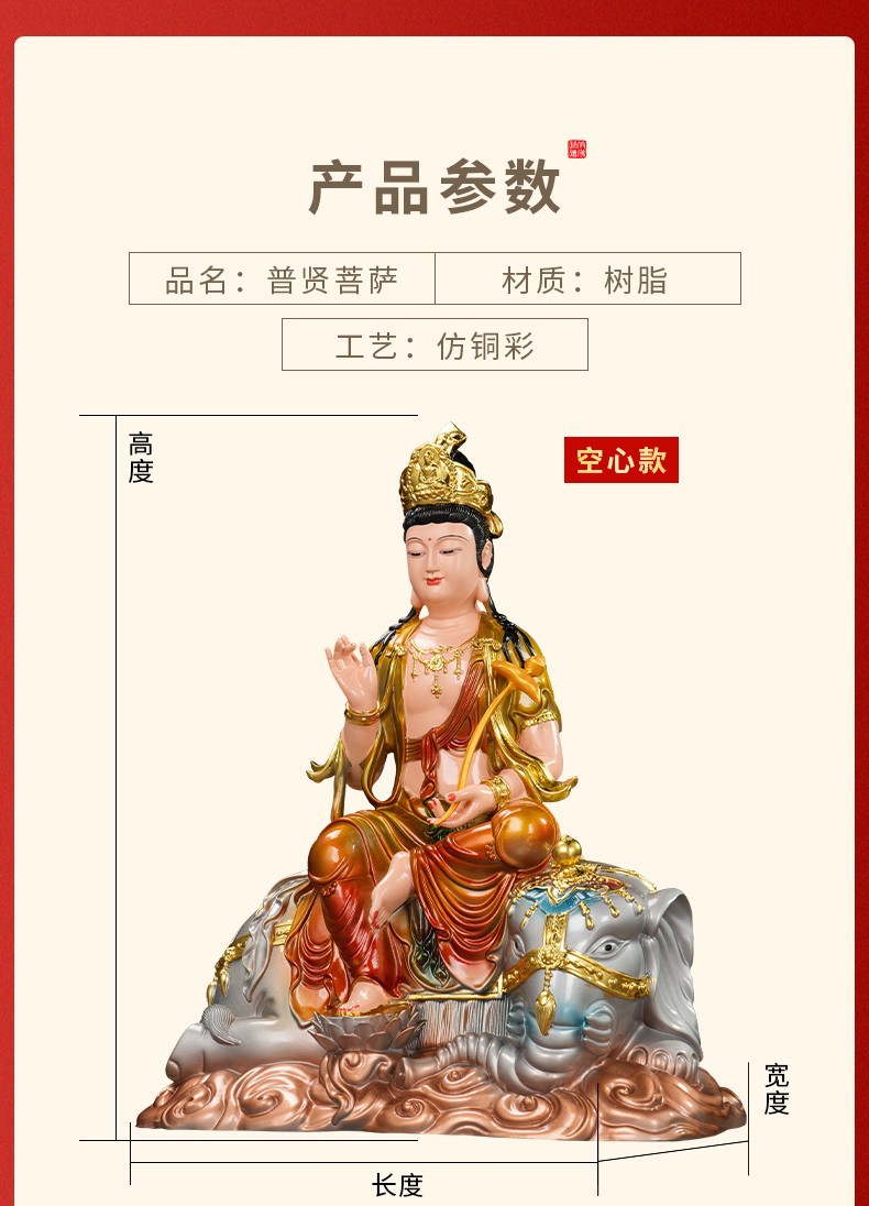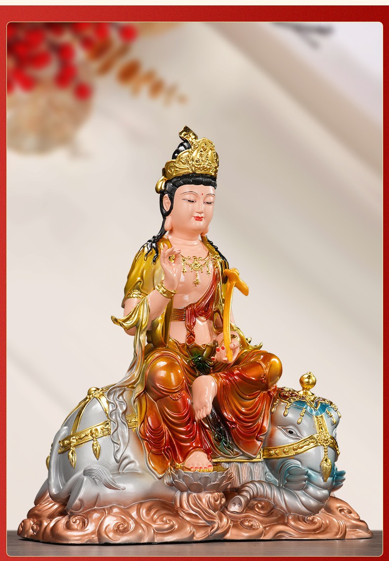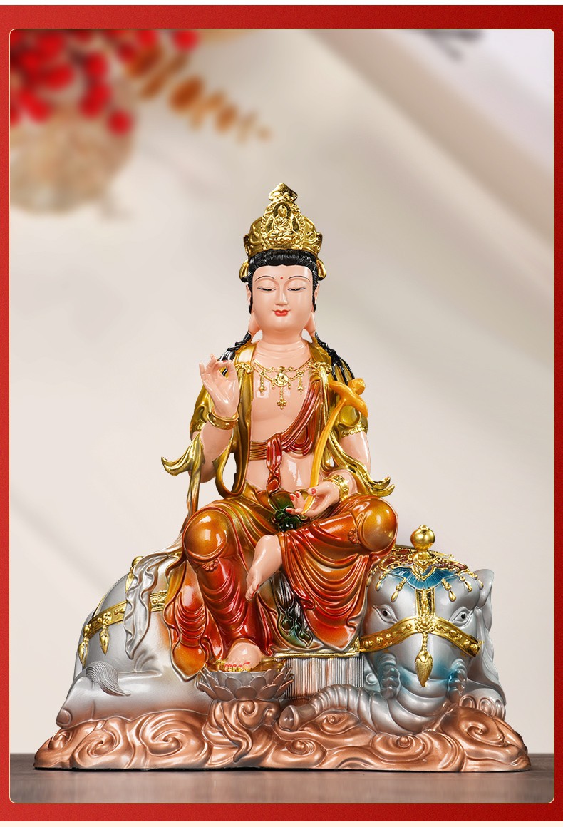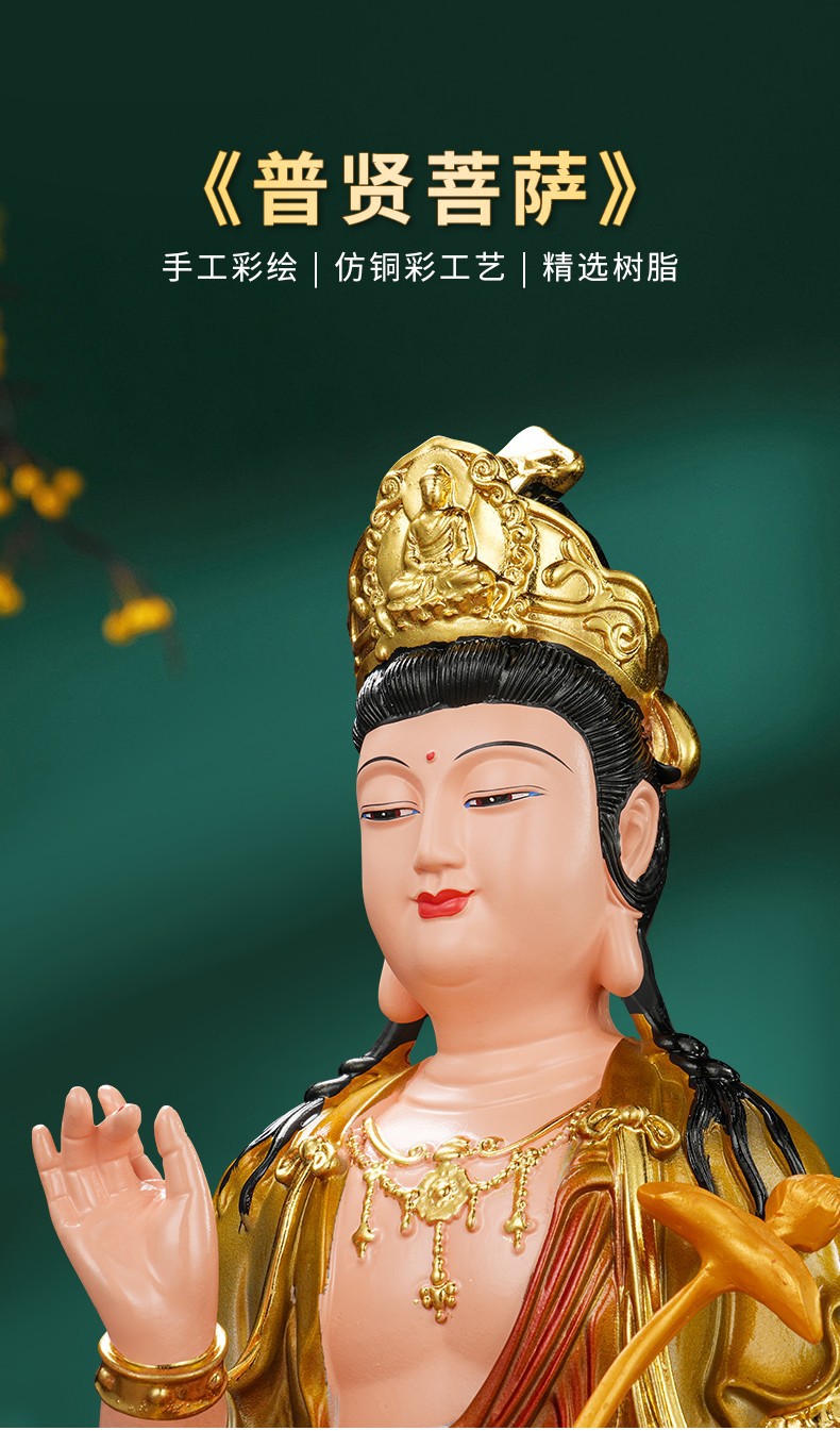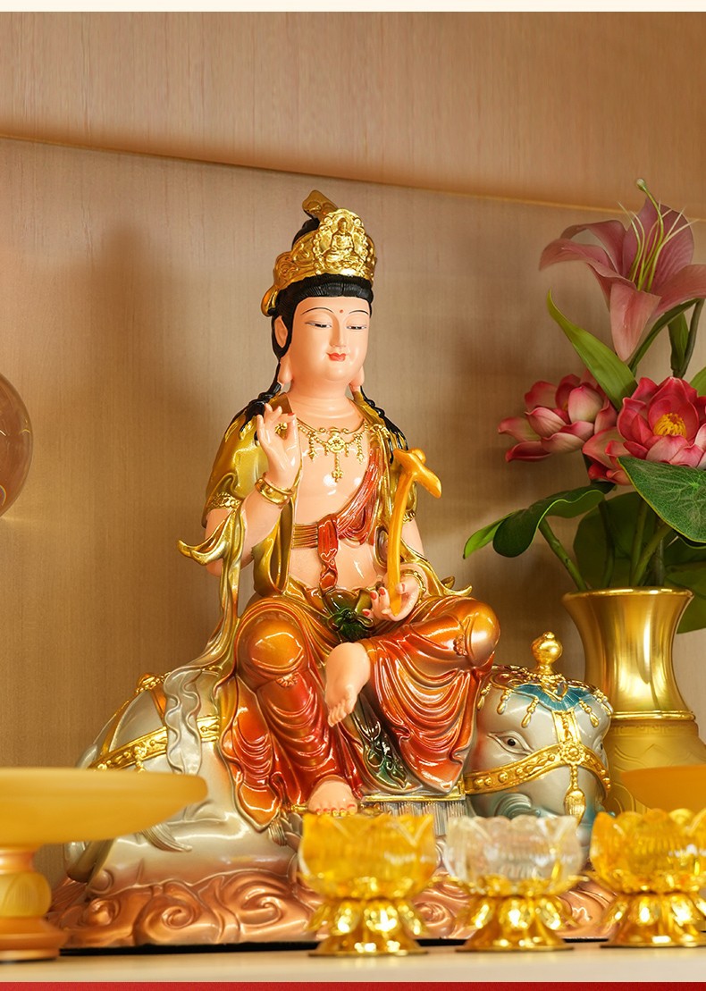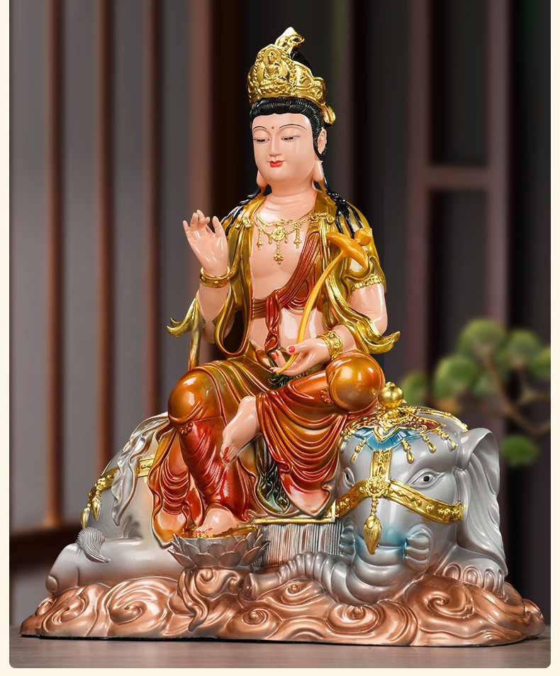 普賢菩薩の神像樹脂の置物華厳三聖仏像仏堂の礼仏家庭用室内の銅の工芸