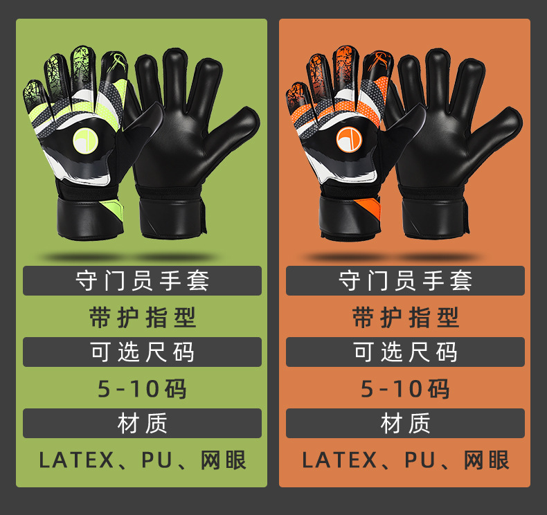 飞盾足球守门员手套乳胶带护指 儿童门将手套训练比赛足球用品