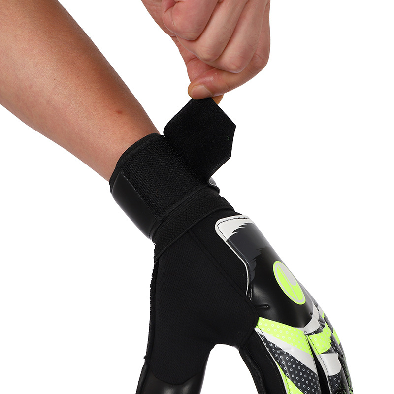 クロスボーダーのサッカーのゴールキーパーの手袋の滑り止めの子供の試合のラテックスの耐摩耗の手袋のドアは通気性の指の手袋を保護します。