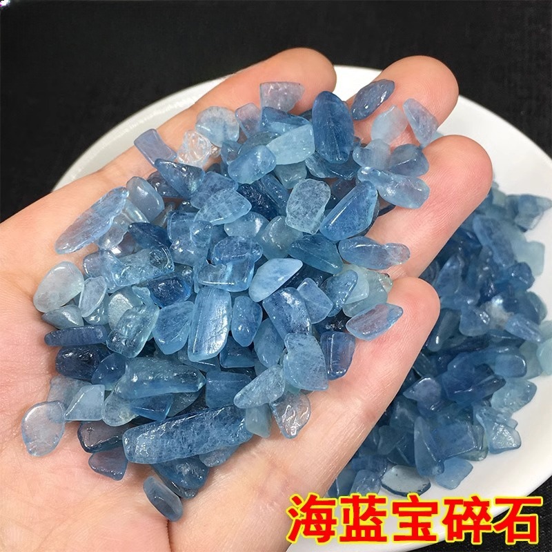 天然海藍宝砕石消磁粒子水晶造景石植木鉢水槽装飾材料小石
