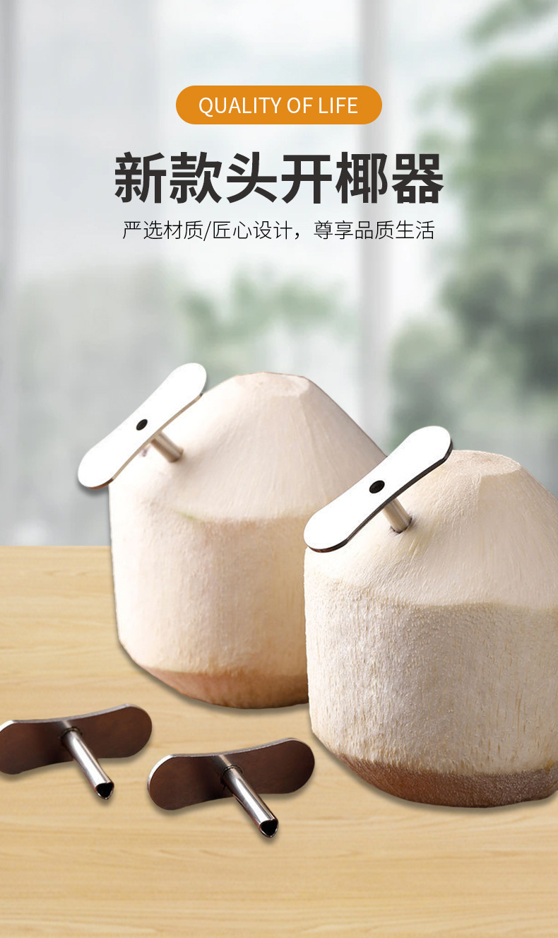 ココナッツの神器を開けて新鮮なステンレスのココナッツの殻を開けます。