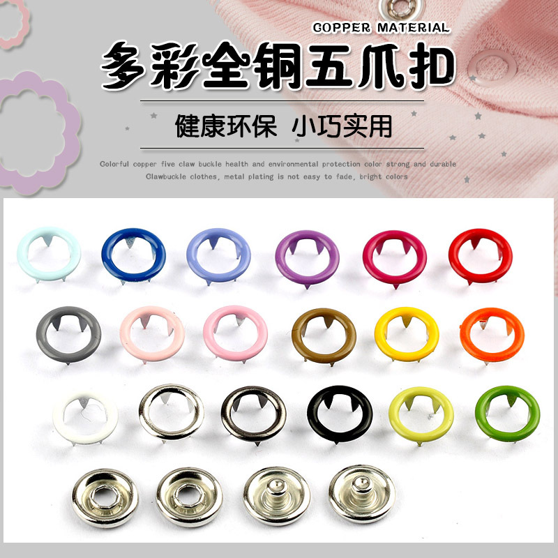 現物カラー全銅五爪は乳幼児の連体服の綿服の金属のボタンを掛けます。