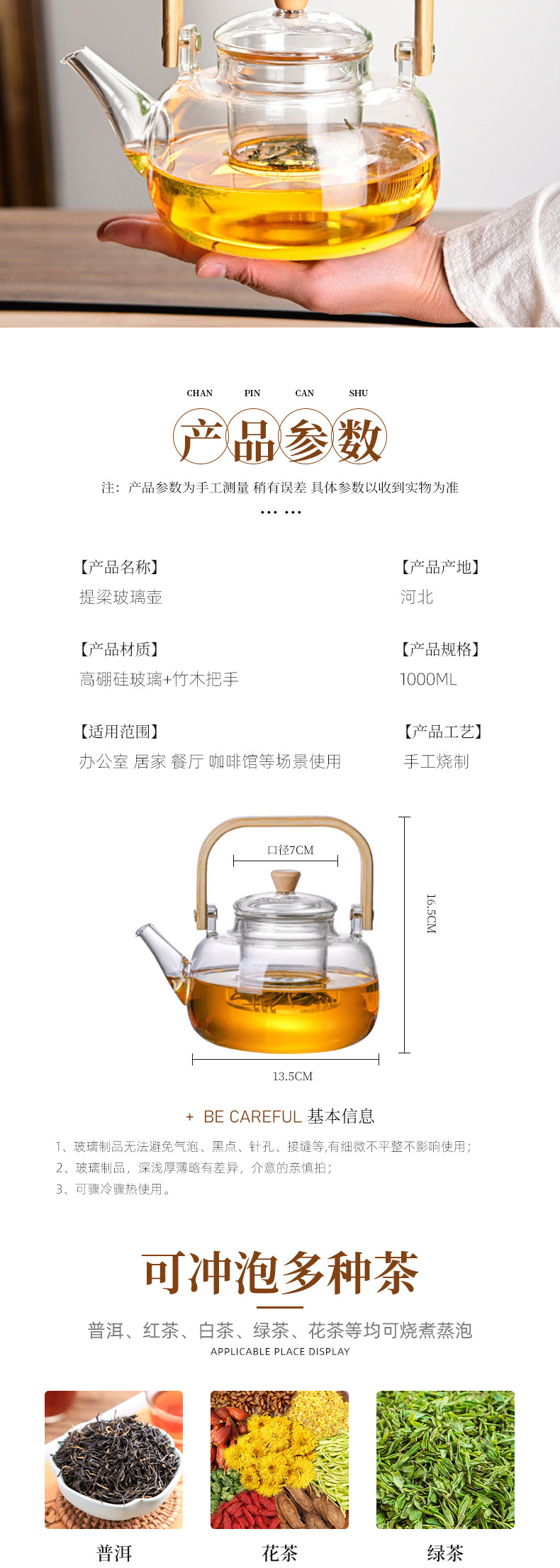 高硼硅玻璃提梁壶家用玻璃煮茶器爆款茶壶新款耐高温大容量泡茶壶