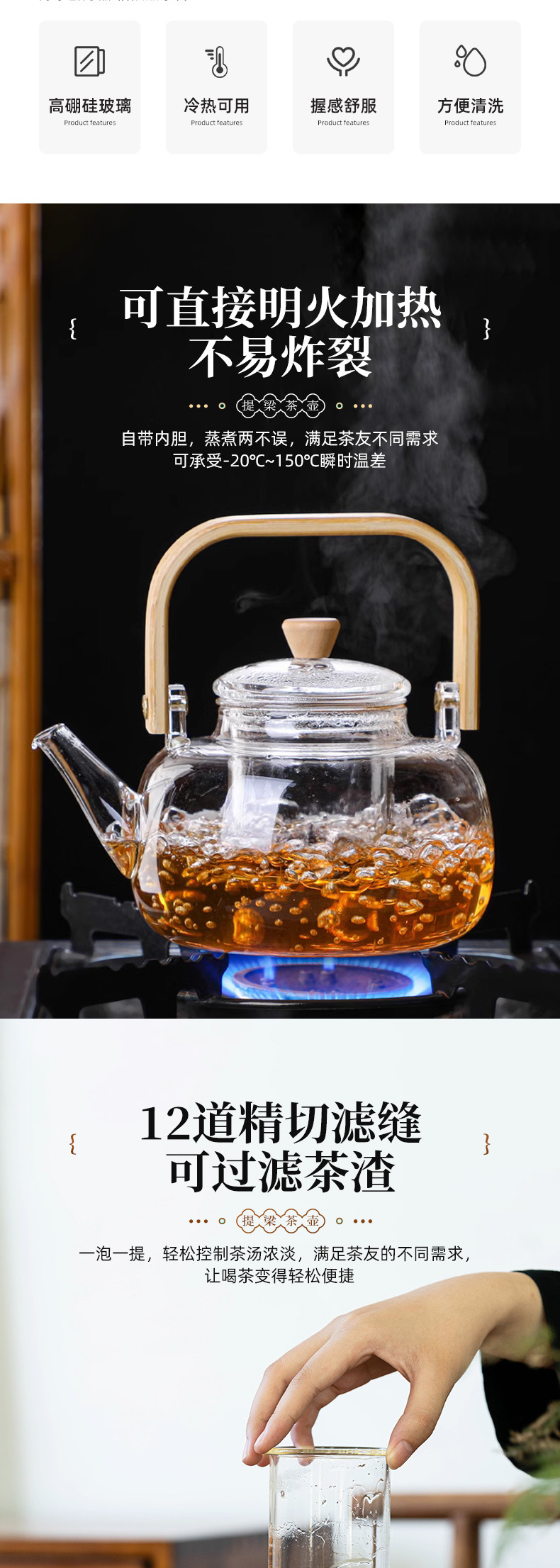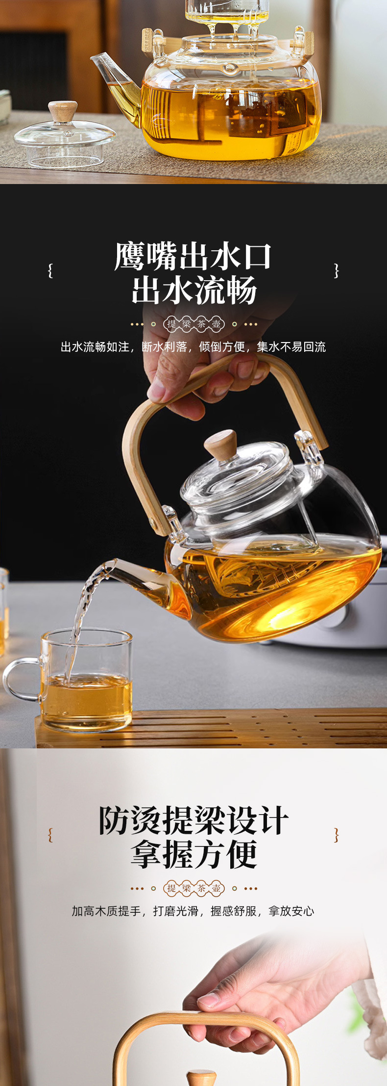 高硼硅玻璃简约家用提梁壶 茶水分离可过滤茶壶 电陶炉加热泡茶壶