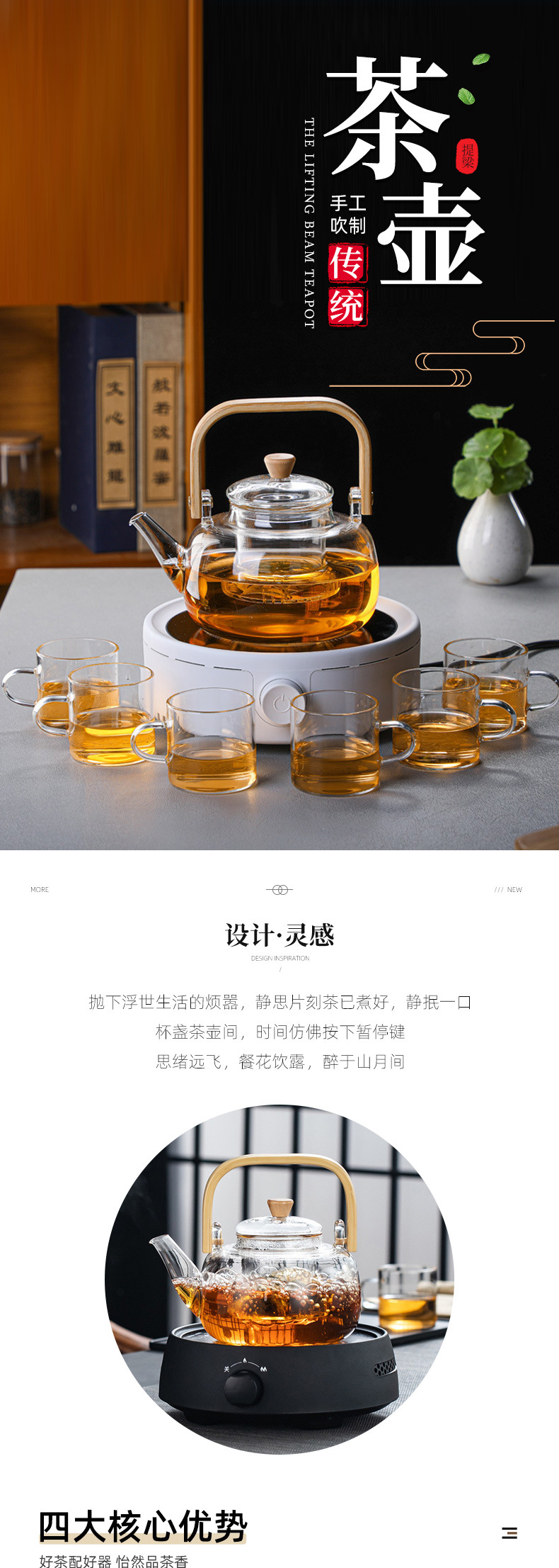 玻璃煮茶壶烧水壶家用耐高温茶壶2025新款办公室电陶炉提梁壶套装