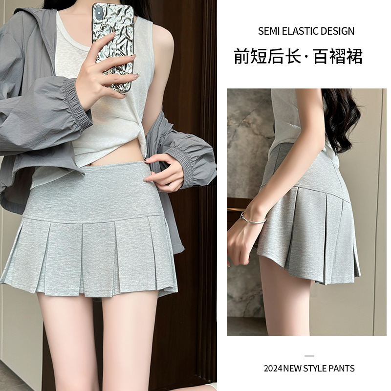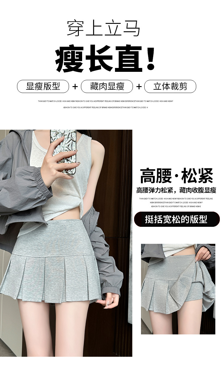 目に見えないジッパーショートスカート女性のための夏 2025 新しいアウターウェア露出防止痩身ヒップスカート A ラインプリーツスカート