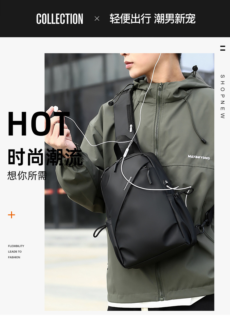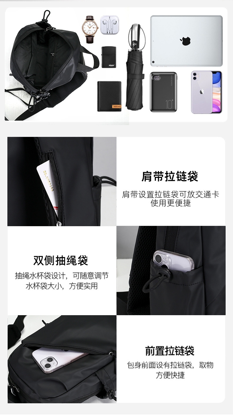 新款多功能防泼水胸包斜挎单肩包休闲运动背包男士斜挎包