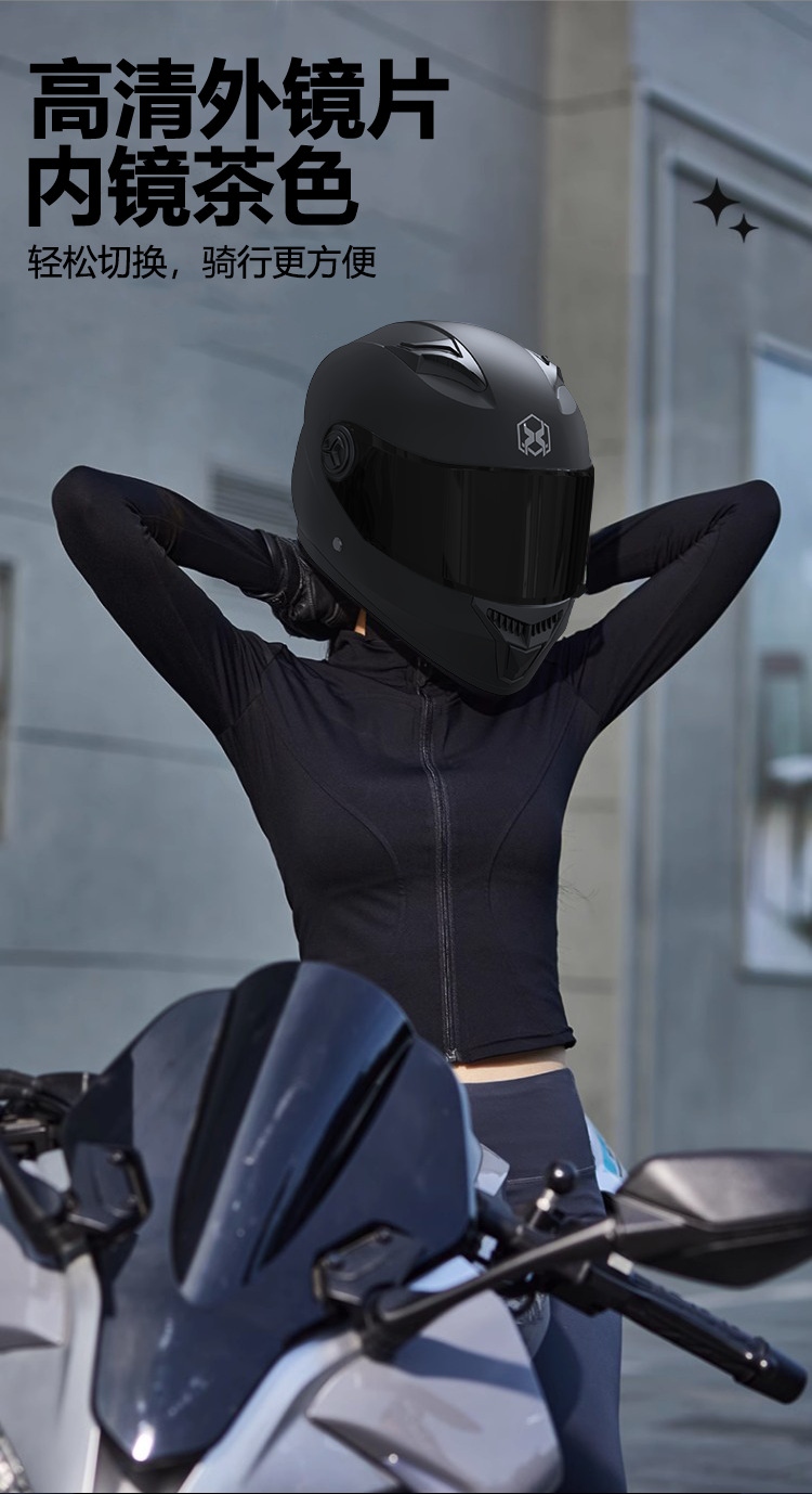 3.镜片:双镜片,外镜PC透明,内镜防晒。