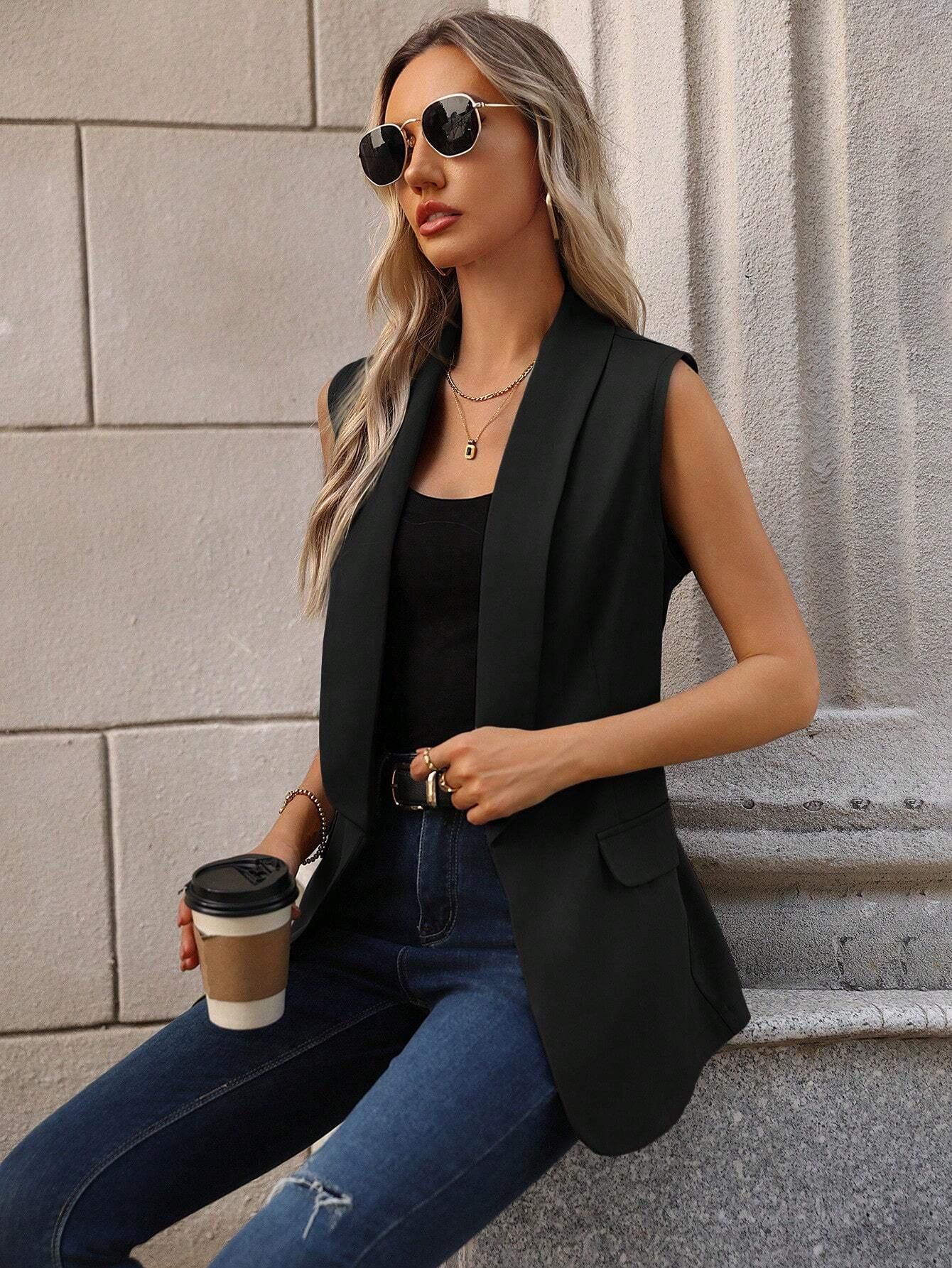女性のベストの上着の欧米の越境する新型の婦人服の気質の優雅な袖なしのベストは襟の純色のスーツのコートをめくります。