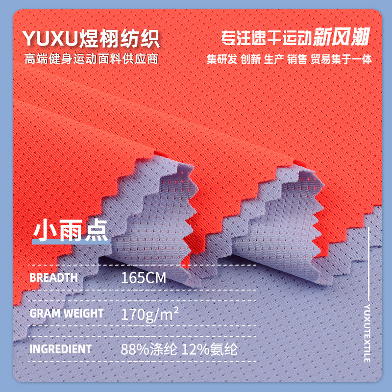 ポリエステルアンモニア小雨点針穴鳥眼速乾性生地170g高弾通気性スポーツウェア日焼け止め生地