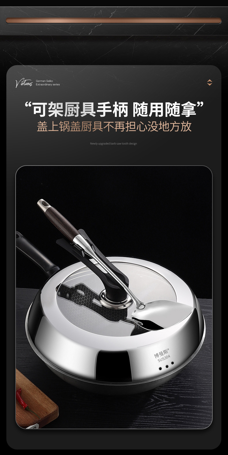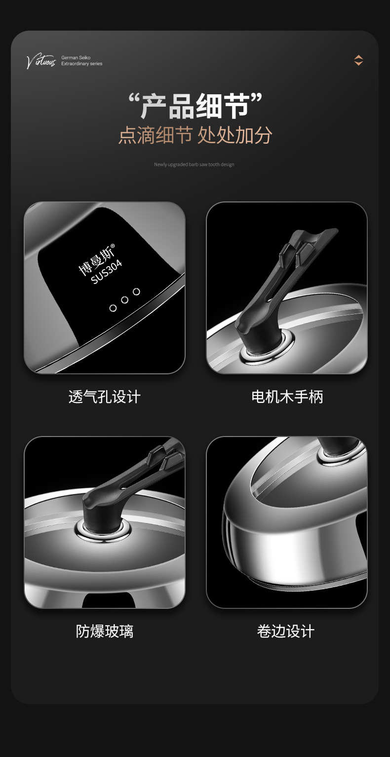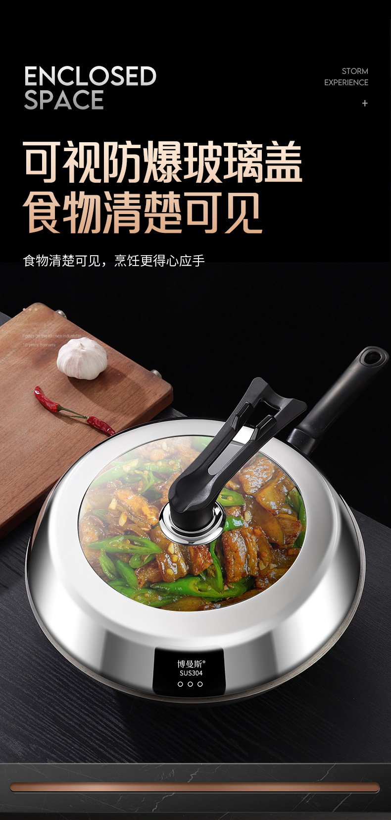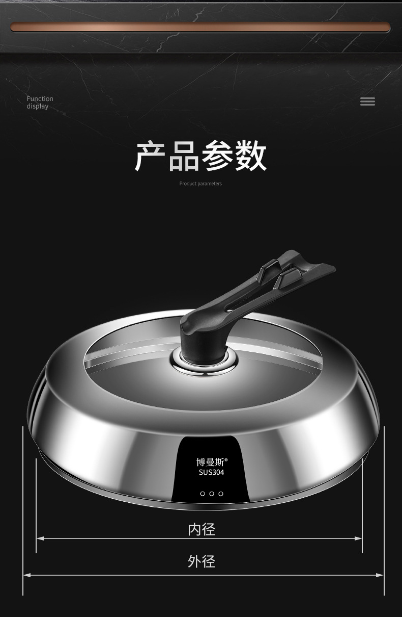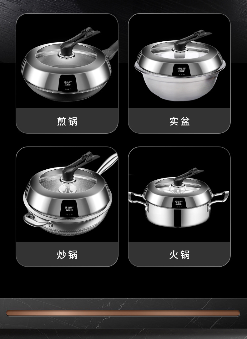 304ステンレスの鍋の蓋を厚くして、高温強化ガラスの万能蓋を厚くします。