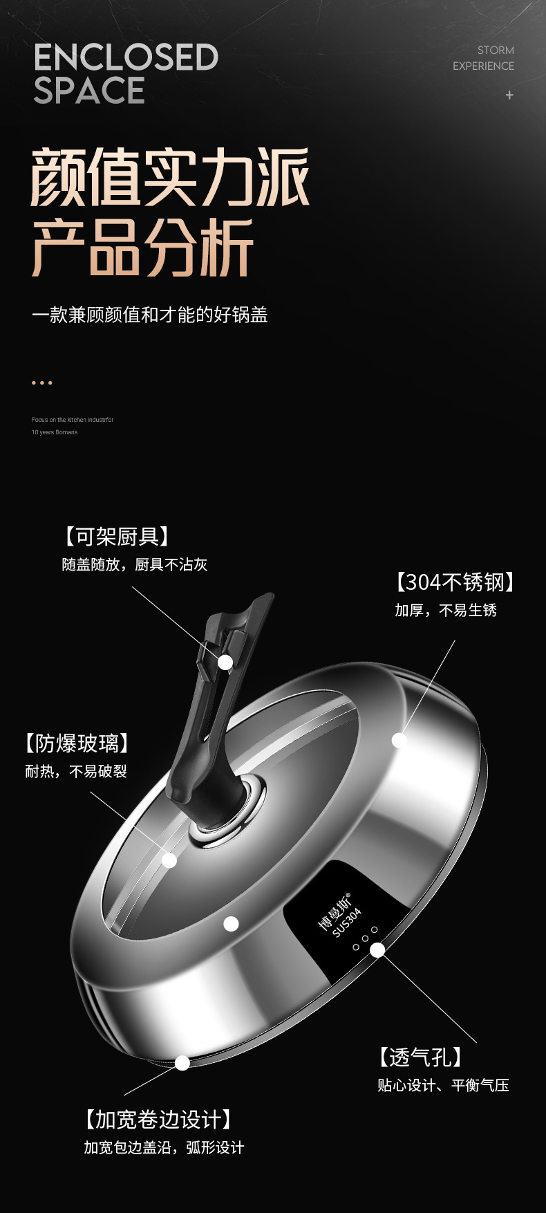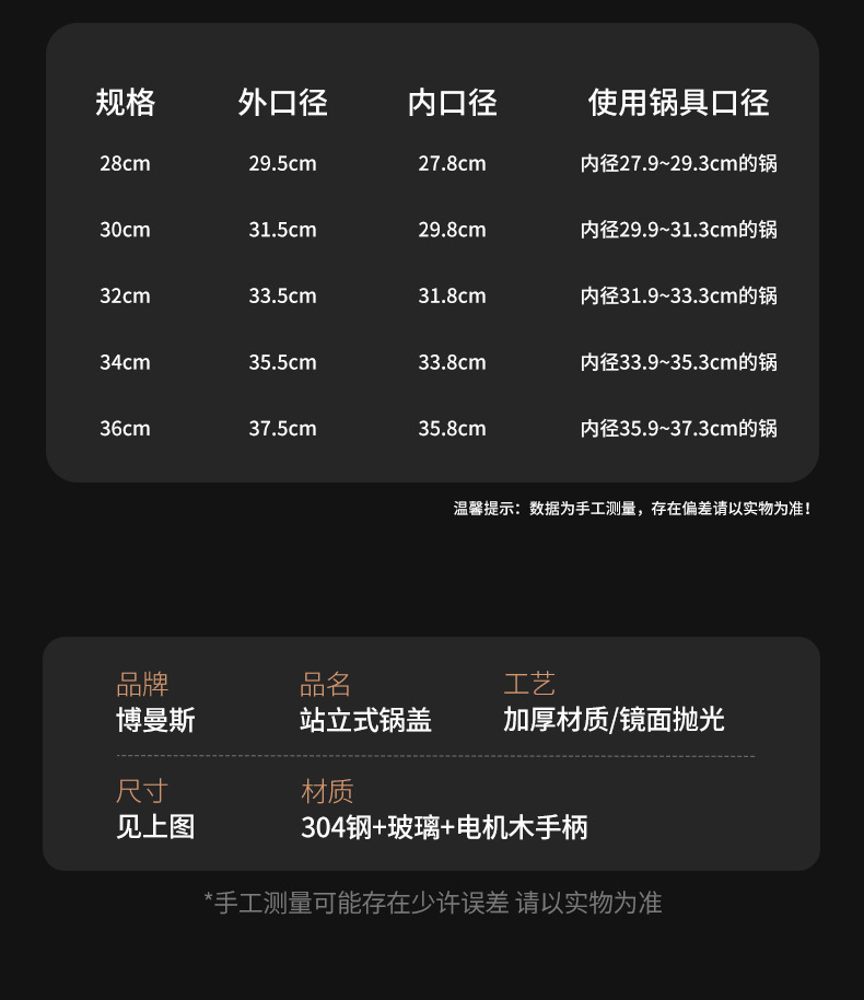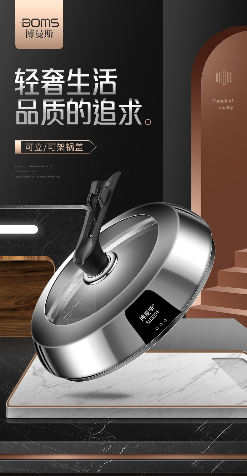 304不锈钢锅盖加厚耐高温钢化玻璃万能盖多用途厨房可视化防溢盖