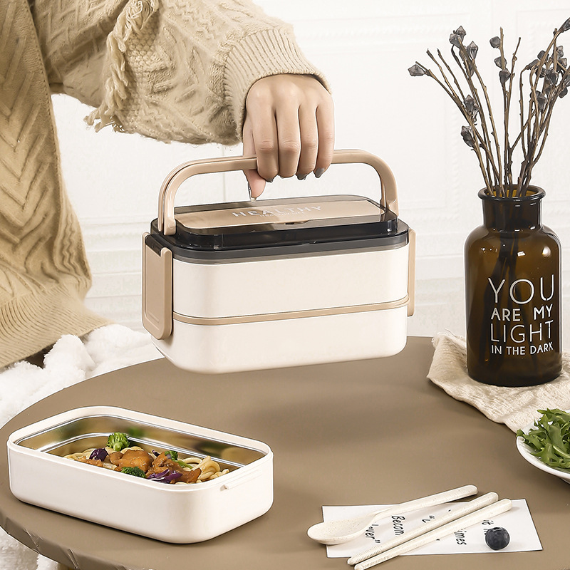 ステンレス保温弁当箱電子レンジ密封サラリーマン二重手提げ仕切り弁当箱学生保存箱