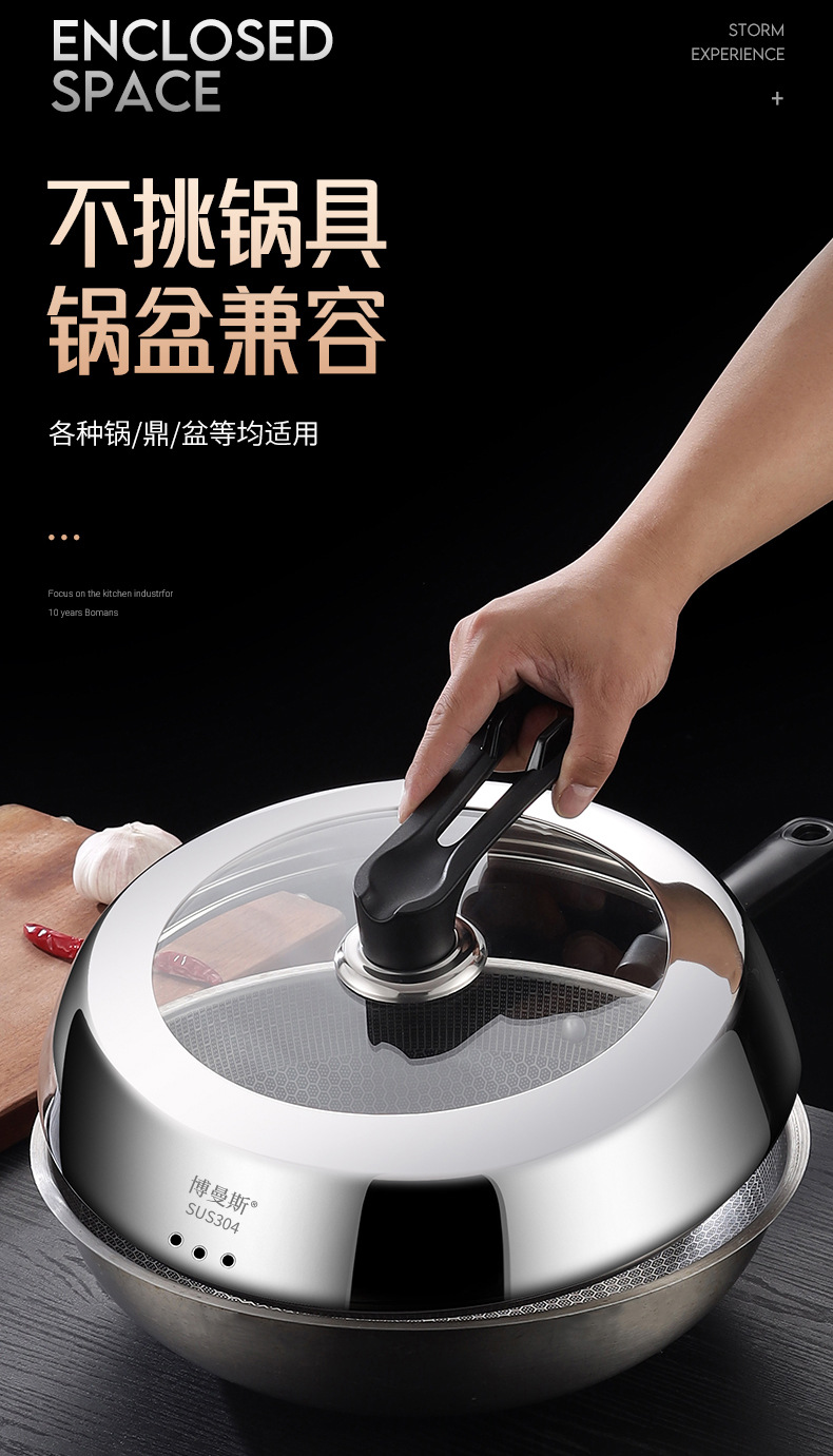 鍋蓋304ステンレス食品級耐高温可視化家庭用厚手と高アーチ鍋蓋万能共通