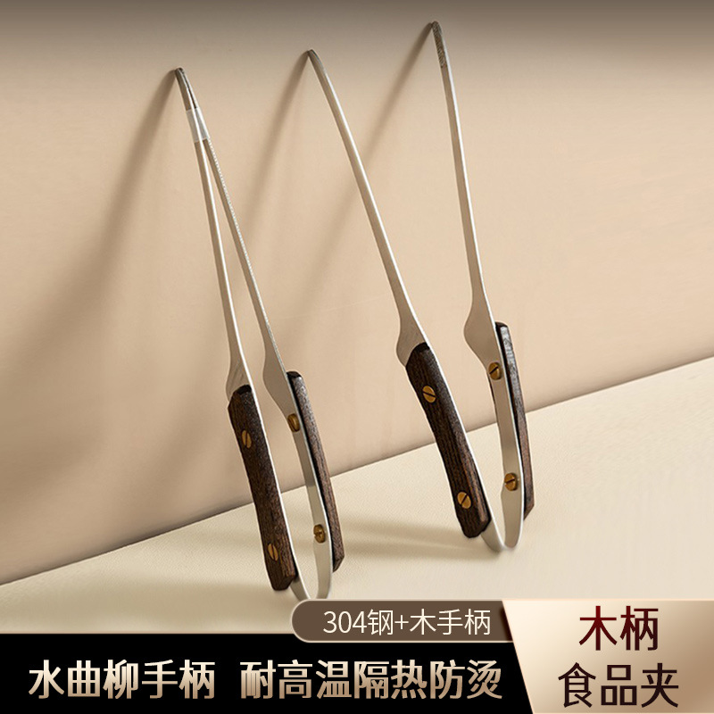 ステンレスの先の食べ物は木の柄の焼肉を挟んで焼きます。