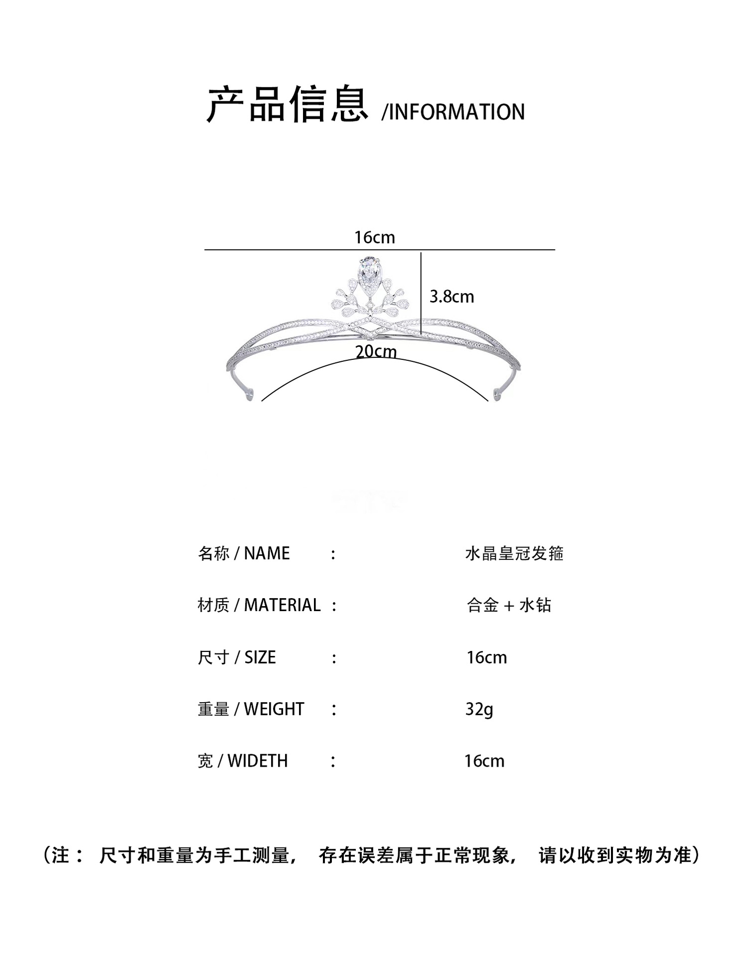 公主水晶皇冠头饰女十八岁生日新娘王冠高级感女神发箍儿童头箍发