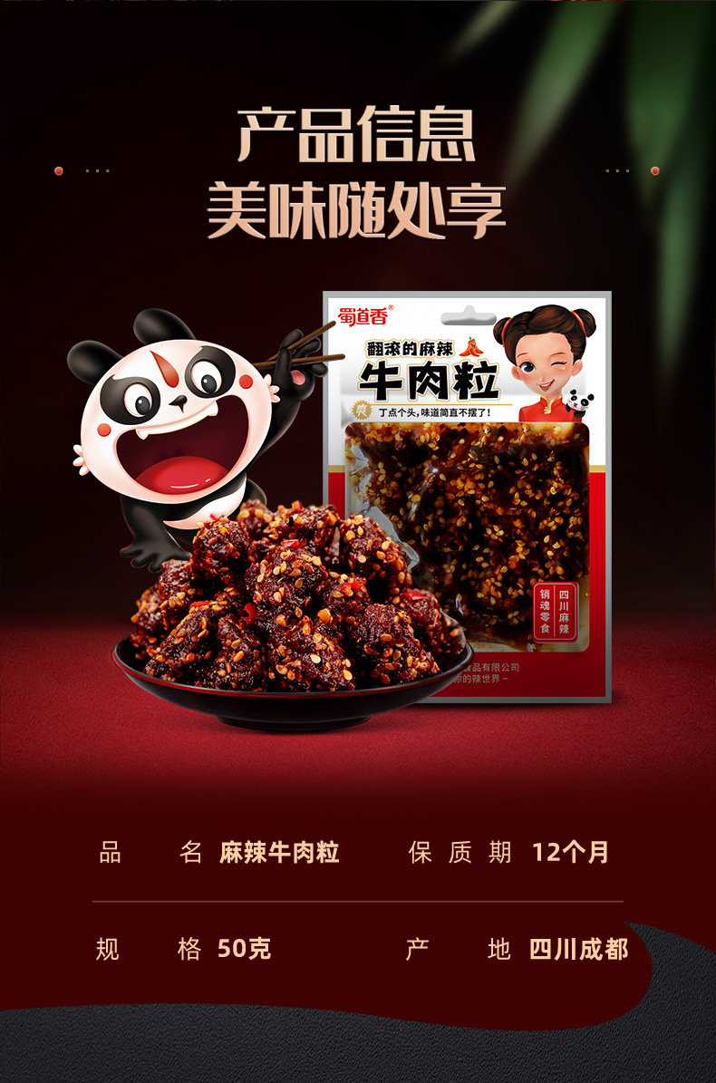【卸売】蜀道香麻辣牛肉干粒50g 本格麻辣牛肉52g 四川重慶牛肉スナック煮込み