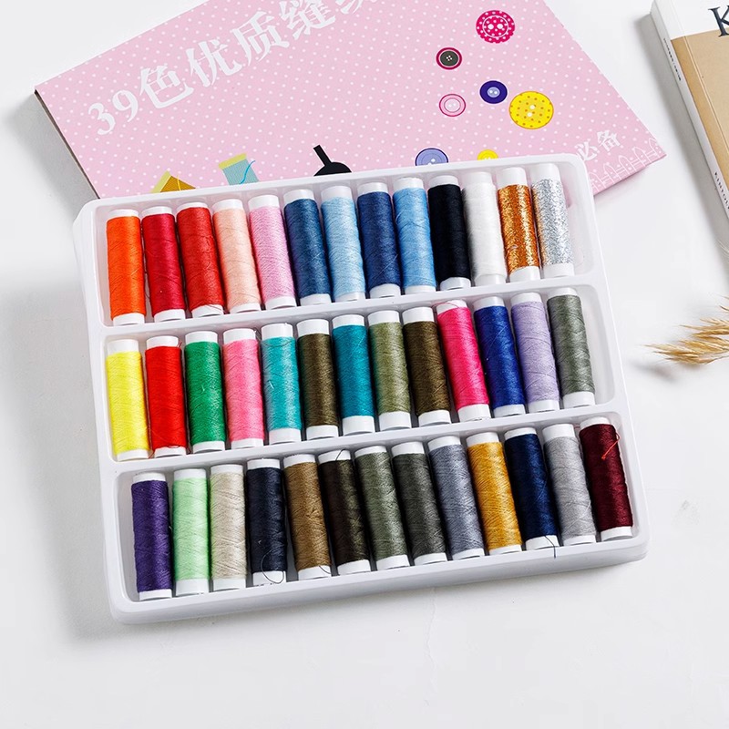 厂家39色缝纫线盒装彩色家用涤纶线缝纫机线套装402缝纫线手工diy