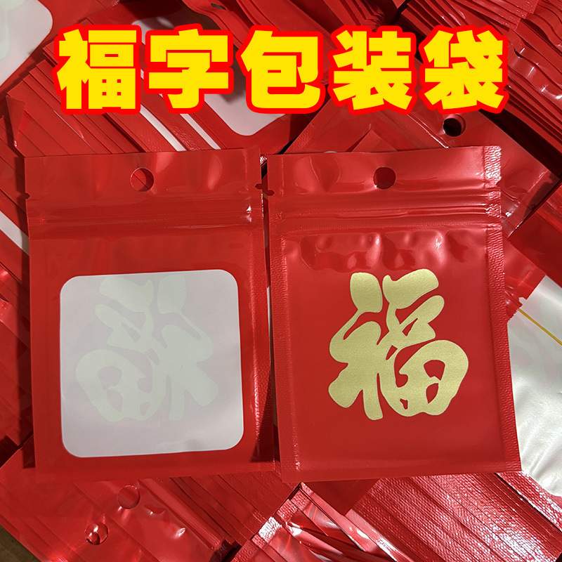 福の字の珠の光の膜の赤い福袋の陰陽の骨の袋のアクセサリはポケットのイヤリングの珠の光の自封の袋の包装袋の現物を密封します。