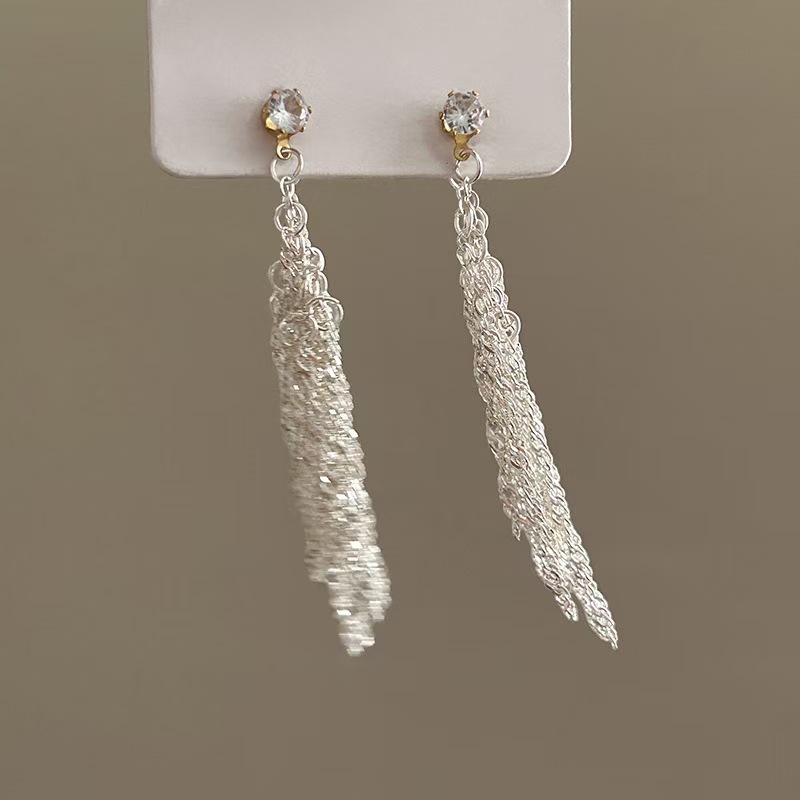 ファッションの長いタイプのフランスの銀色のフリンジピアスの軽い豪華な大衆の個性のデザインは精巧で冷たい風の高級感の耳飾りです。