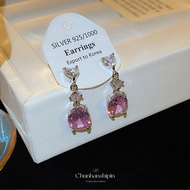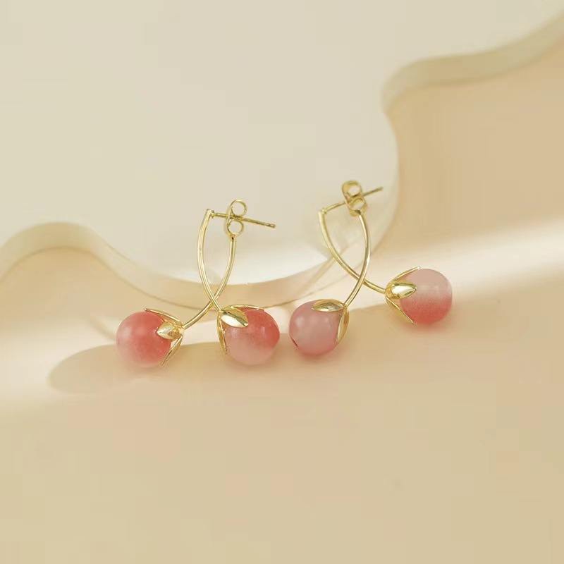 超仙の甘いピンクの小さいトマトのピアスの小さい大衆のデザイン感の長いタイプのイヤリングの気質の蚊取りの皿の耳の穴がない耳のクリップ