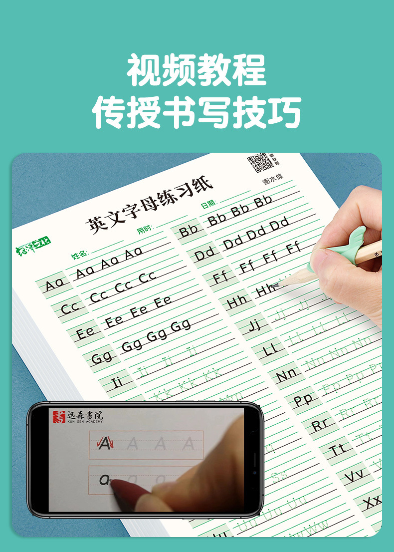 小学生の衡水体の英語のアルファベットの練習本は赤い字の帖の26の英語のアルファベットのビデオのチュートリアルの規範書を描きます。