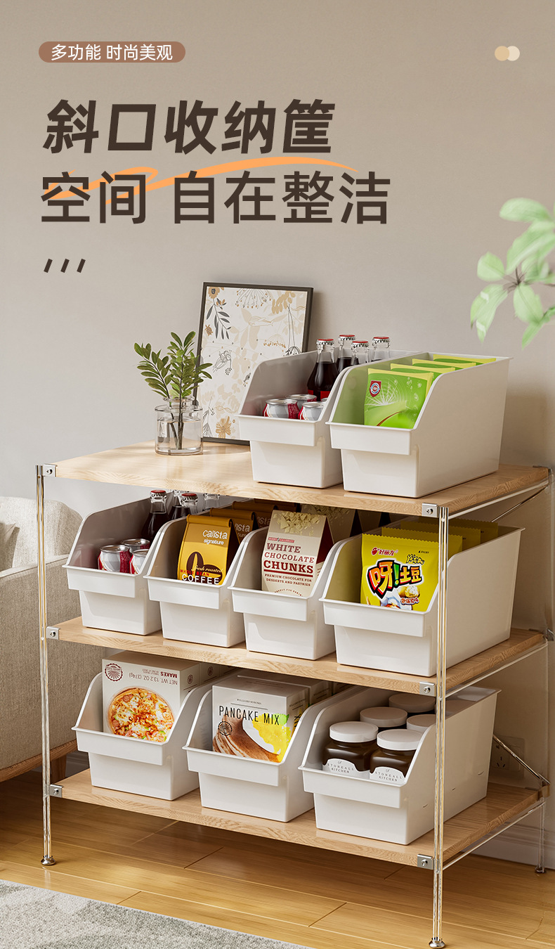 家用橱柜收纳筐多功能斜口塑料直角桌面整理分隔杂物储物盒收纳盒