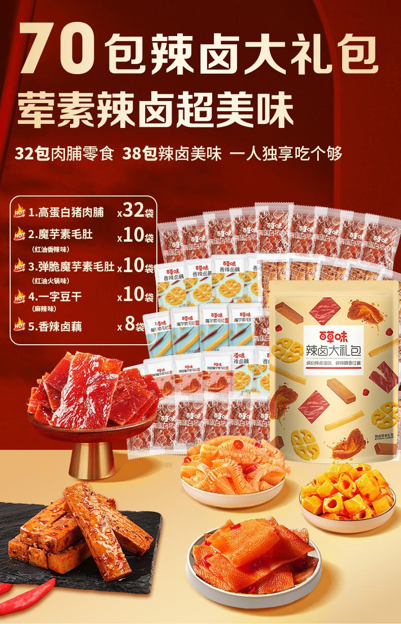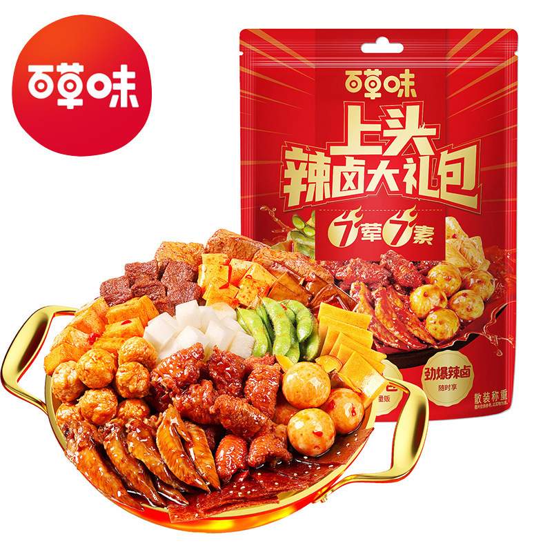 百草味上头辣卤大礼包540g卤味肉类素食办公室寝室休闲零食