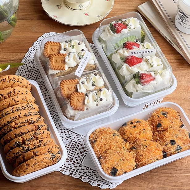 正誠バター餅包装箱クリスピー泡芙焼き餅ケーキ透明弁当箱使い捨て梱包箱