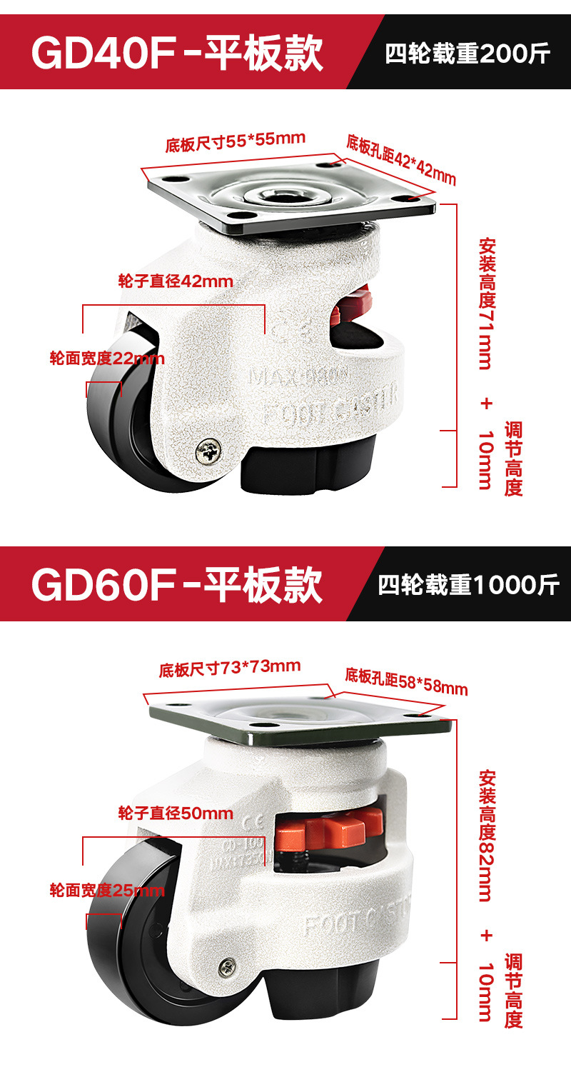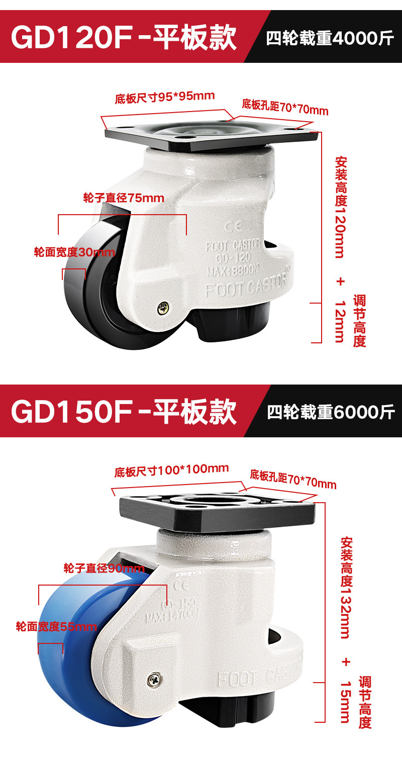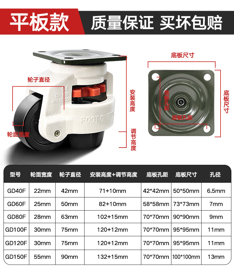福馬輪GD-40F60F80F100F120F150F機械精密機械サポート型水平調整キャスター