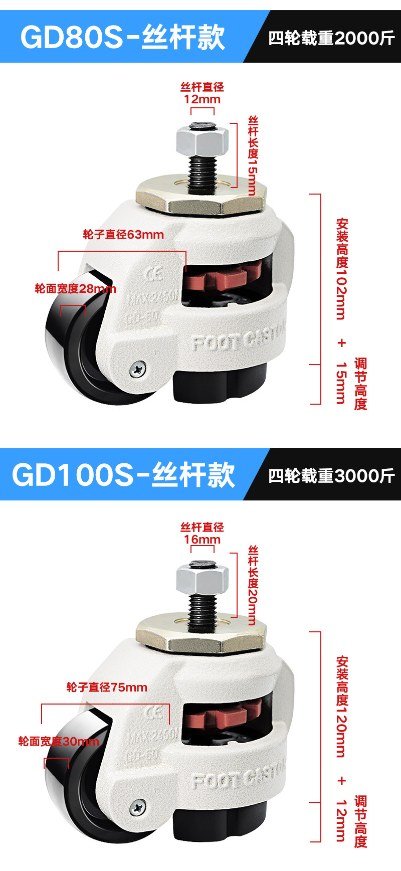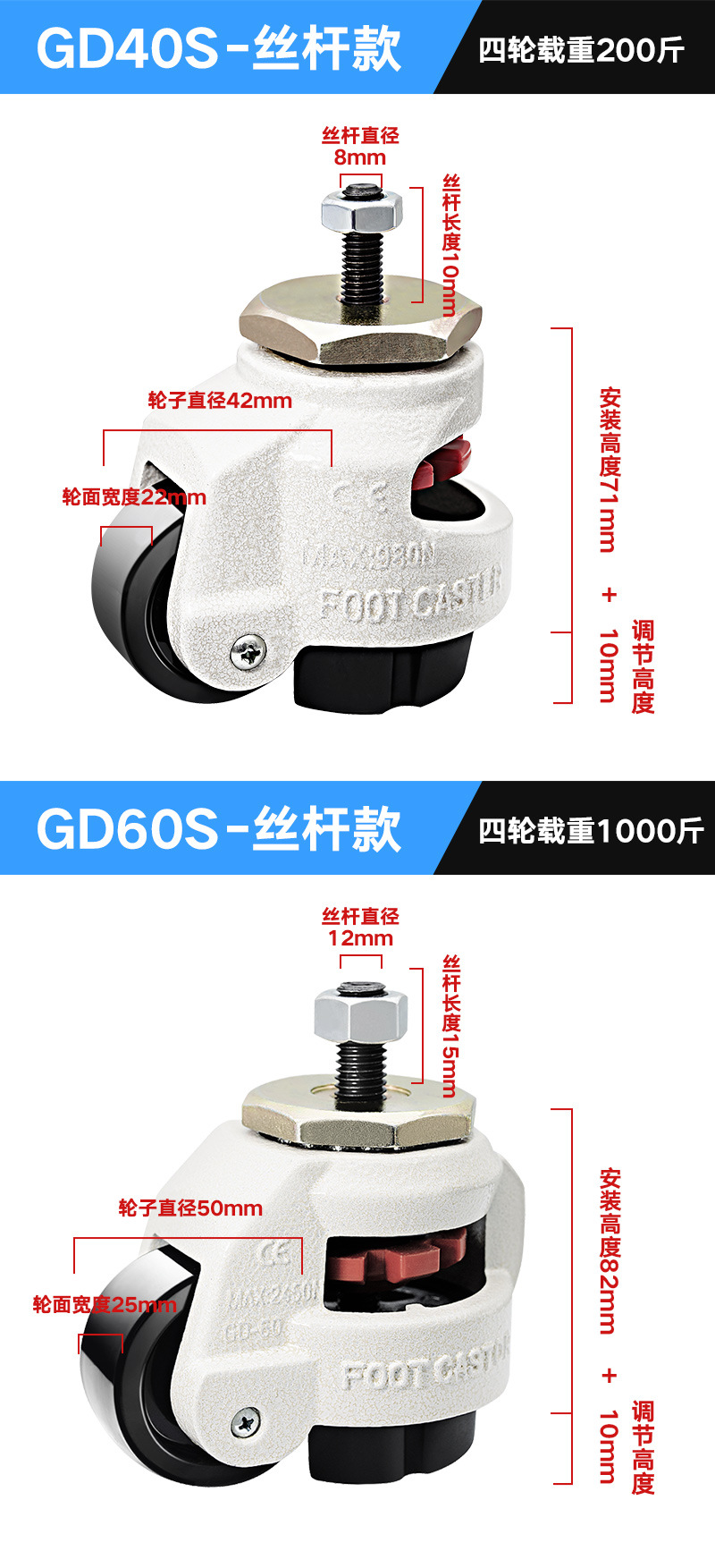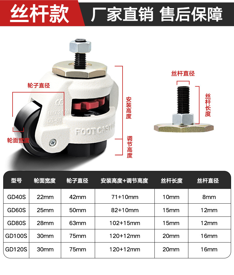 福馬輪GD-40F60F80F100F120F150F機械精密機械サポート型水平調整キャスター