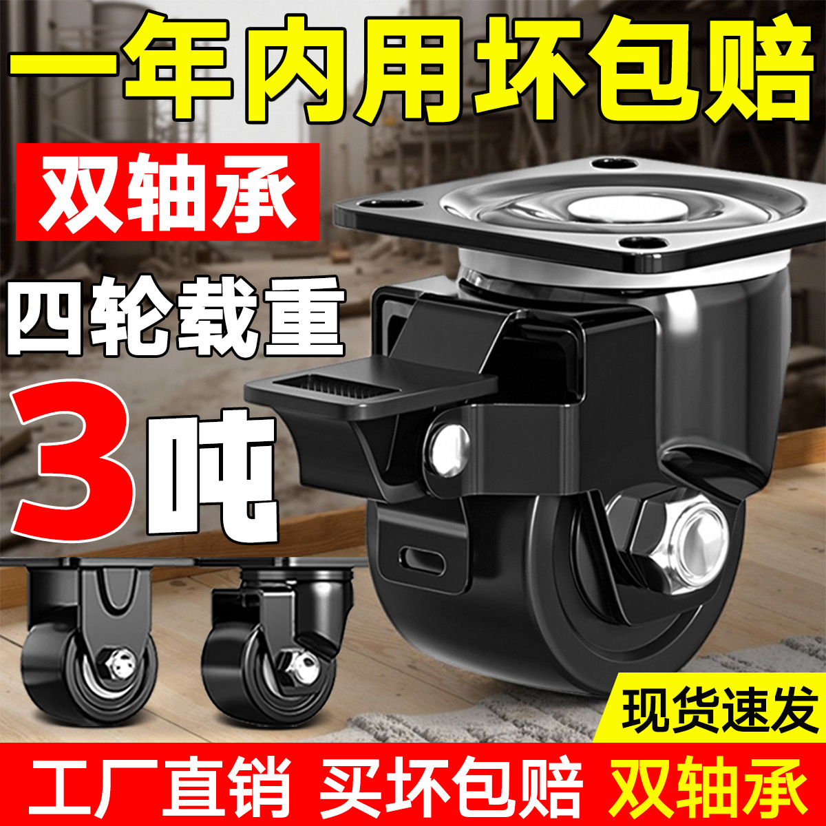 承重脚轮重型3寸2寸万向轮轮子带刹车4寸工业载重尼龙轱辘承重3吨