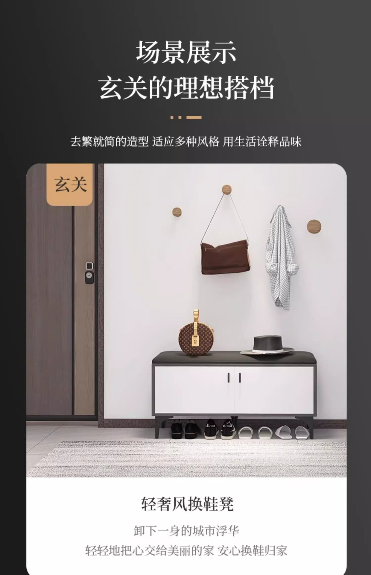 靴の腰掛けを交換します。家庭の入り口は下駄箱に座って腰掛けに入ることができます。