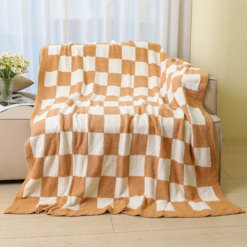 チェック柄ソファブランケットオフィス屋外航空飛行機ブランケットニット厚みのある秋と冬のショール昼寝ブランケット