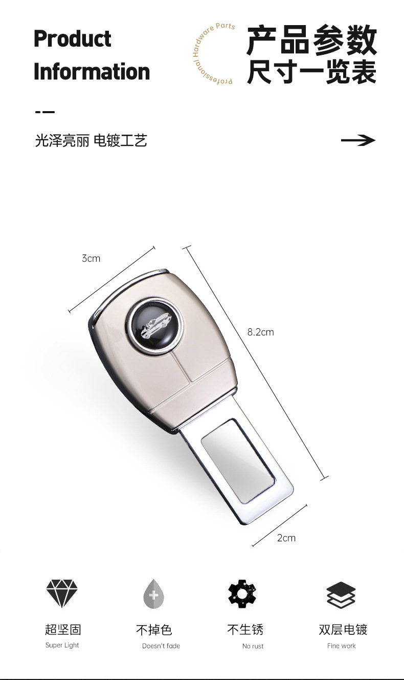自動車安全差込帯バヨネット延長フォークベルト固定継手片バックル車載車内装飾レーザー車標