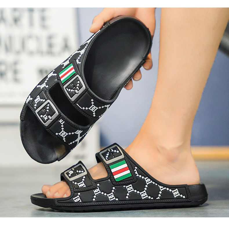 夏の博ケンスリッパの外に二重ボタンを着ているカップルのサンダルが国境を越えた男性の一字サンダルslippers