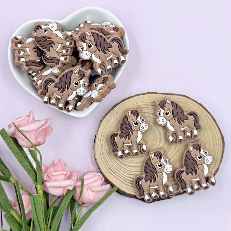 新款跨境厂家直销食品级动物生肖马硅胶牙胶珠子串珠笔插入珠批发