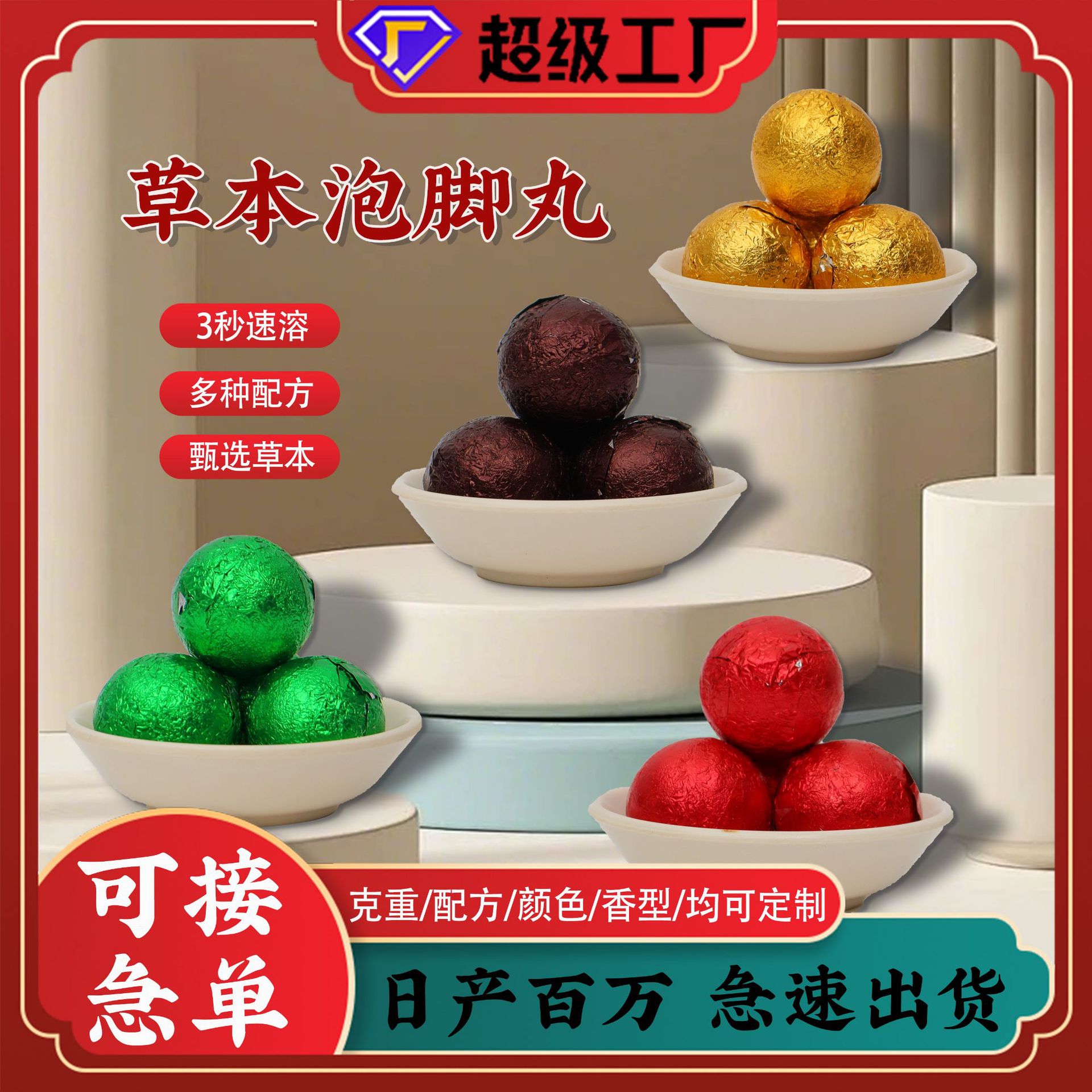 泡脚丸艾草暴汗足浴球草本精油泡脚球速溶老姜花椒足浴丸厂家批发