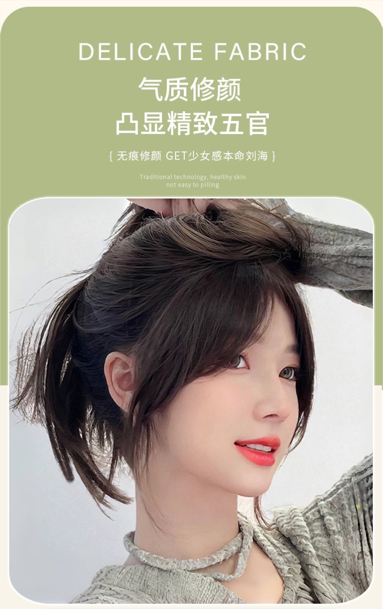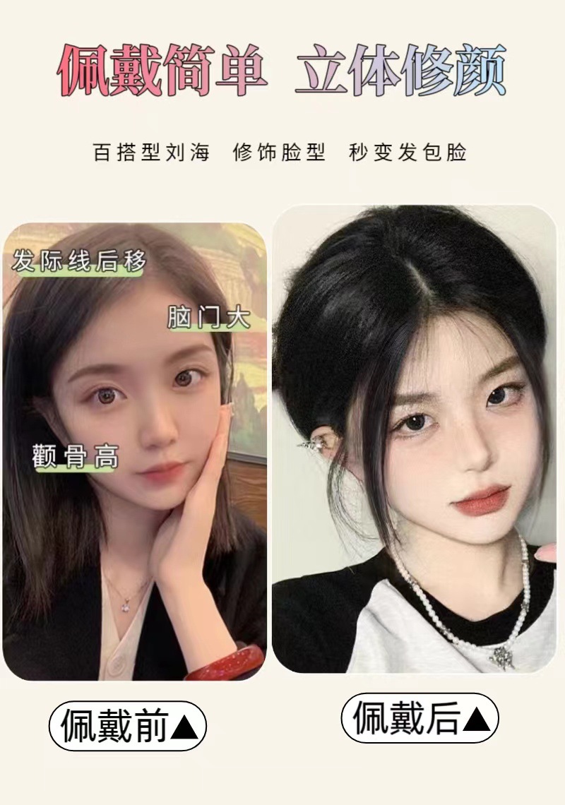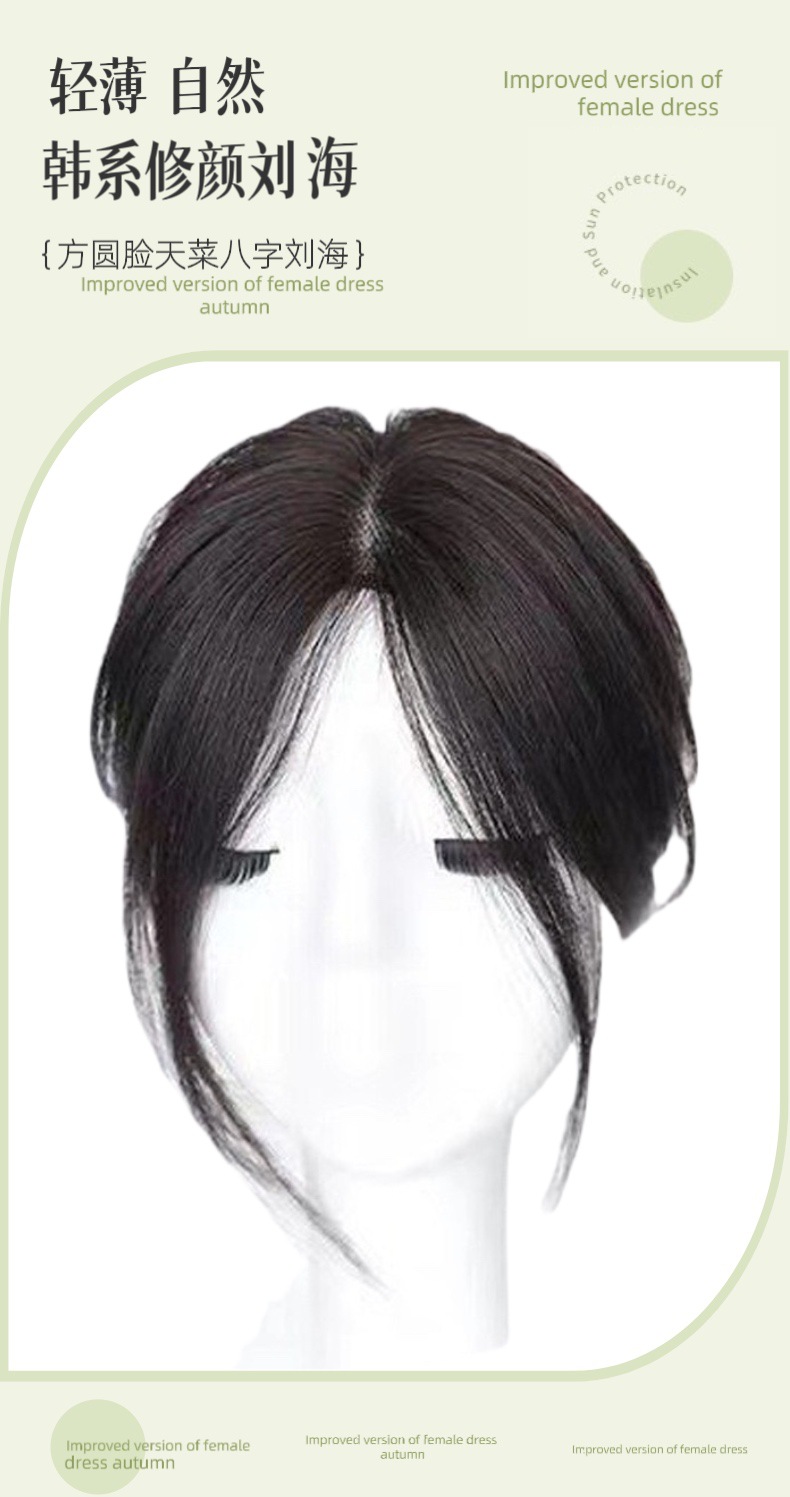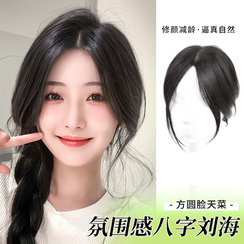 前额八字刘海假发片女时尚中分自然前额增发量蓬松高颅顶补发片