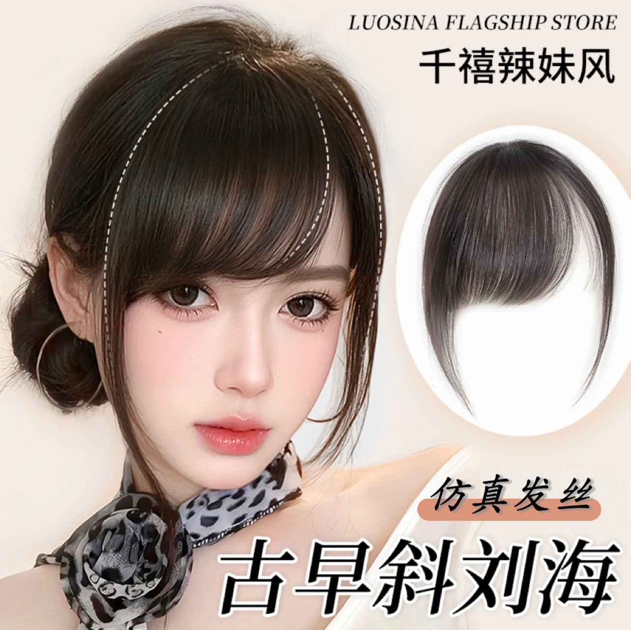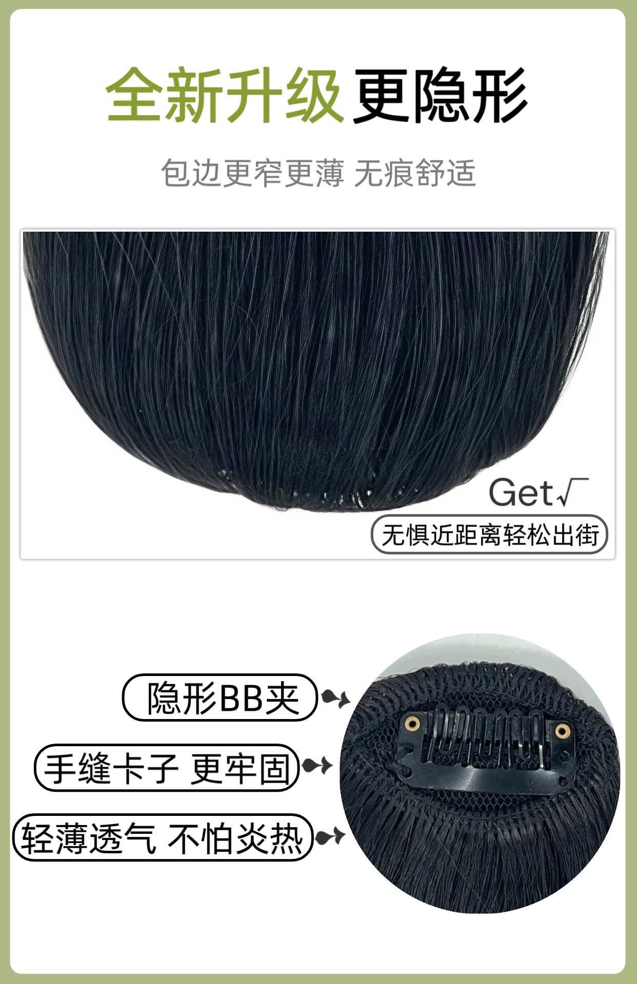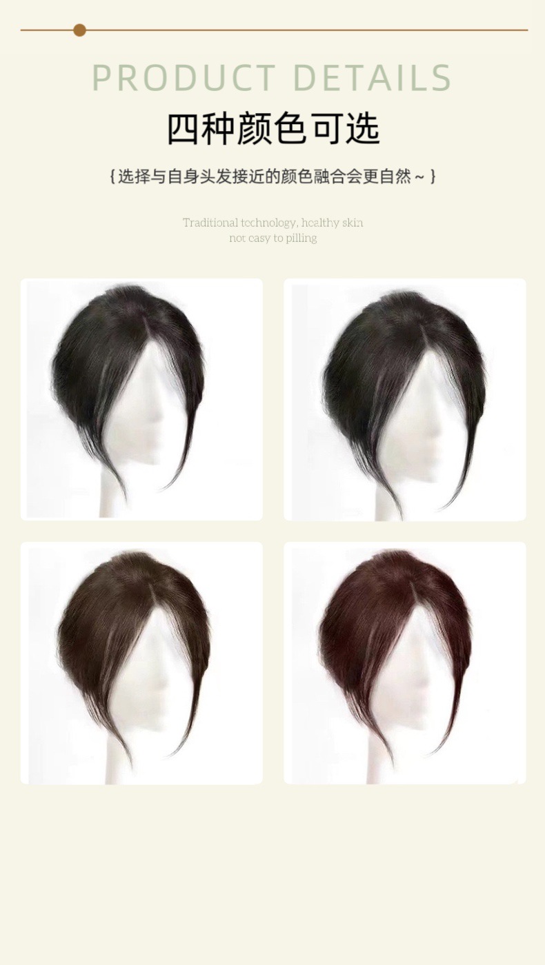 前额八字刘海假发片女时尚中分自然前额增发量蓬松高颅顶补发片