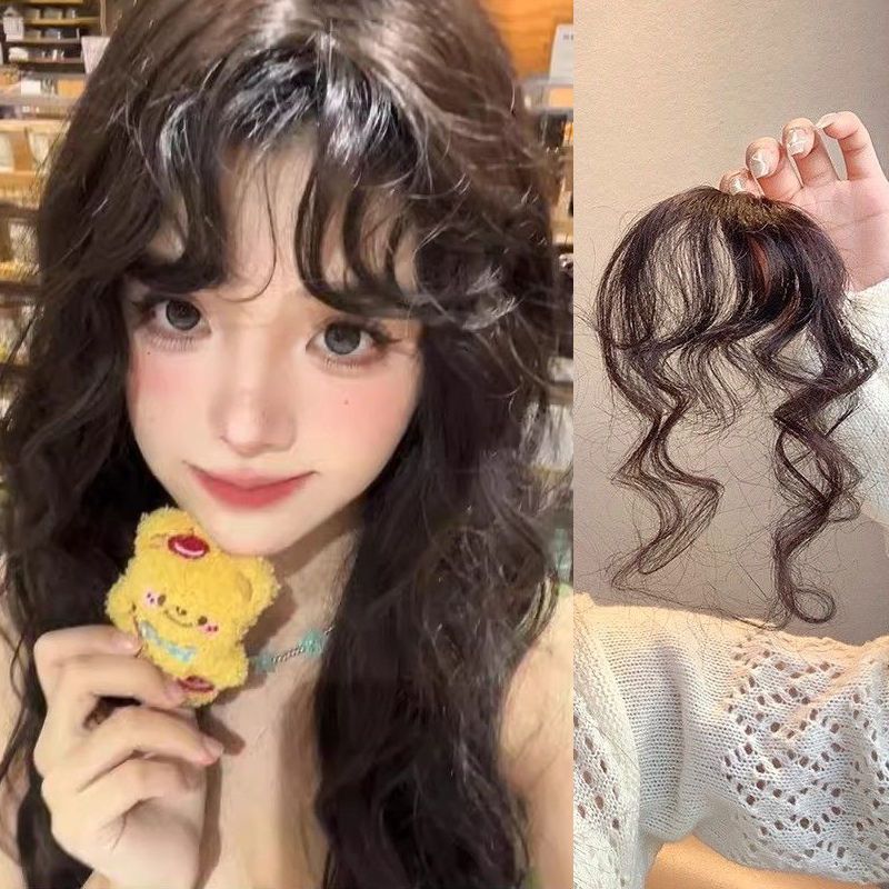 ウールカーリー前髪ウィッグ人工毛エア前髪香港スタイル巻き毛インターネット有名人シームレス額カーテンかつら前髪