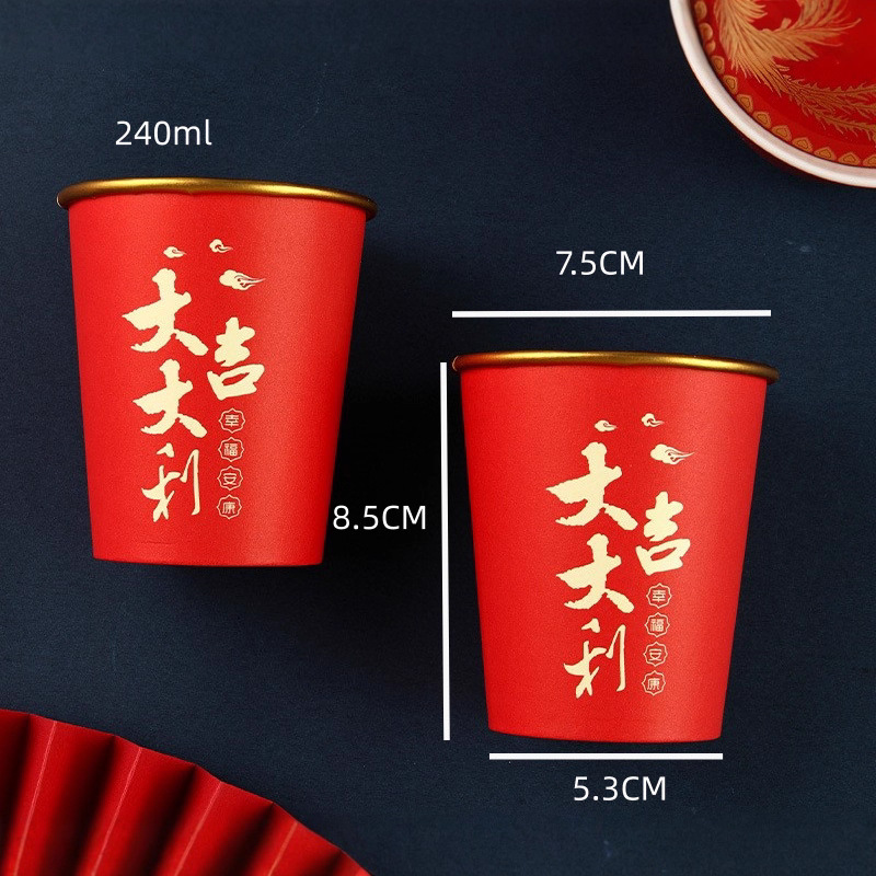 2025年の新年の金蛇年の使い捨て金箔の紙コップの春節の家庭用の赤色の祝い事は源のメーカーの卸売りを厚くします。