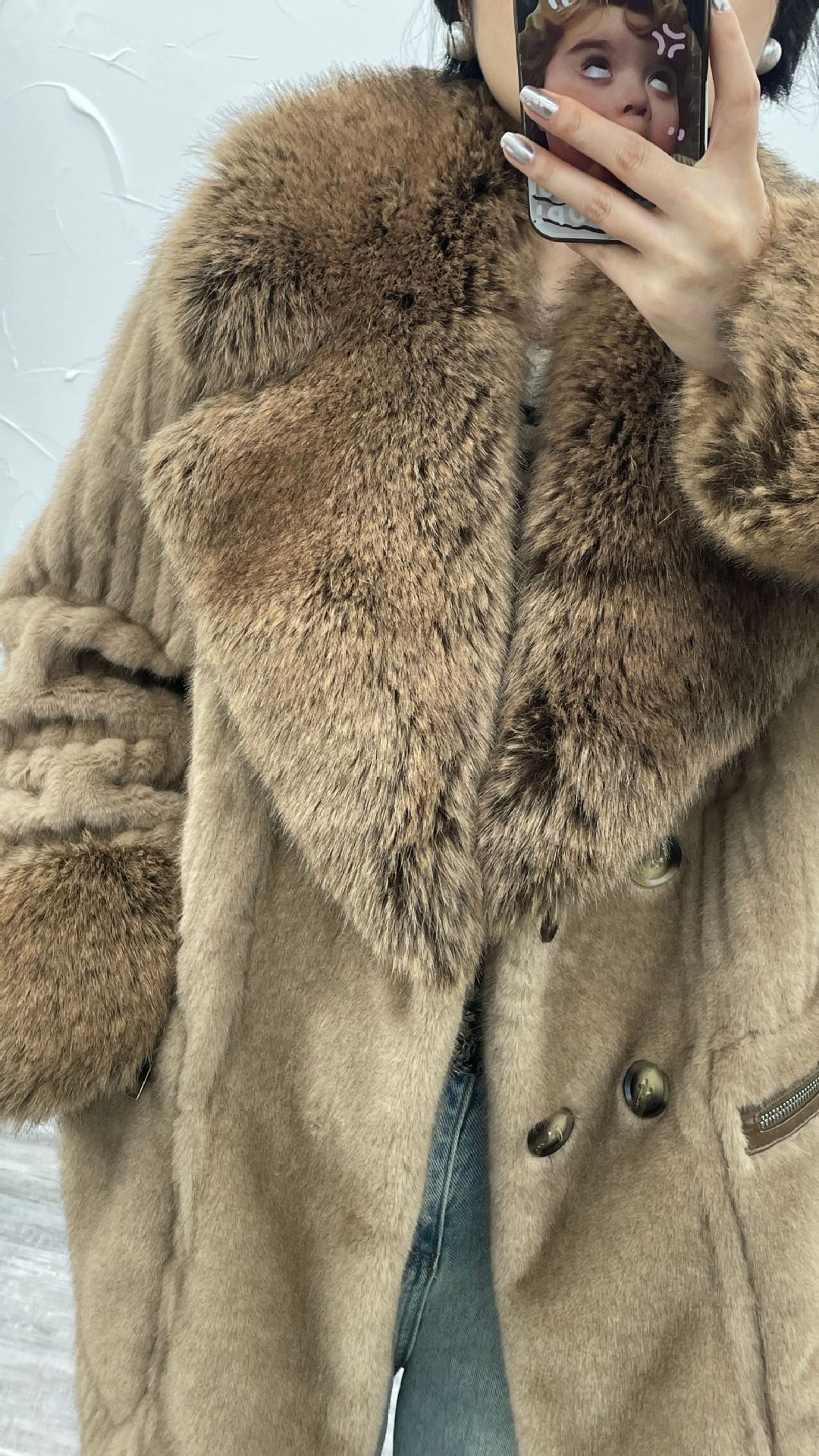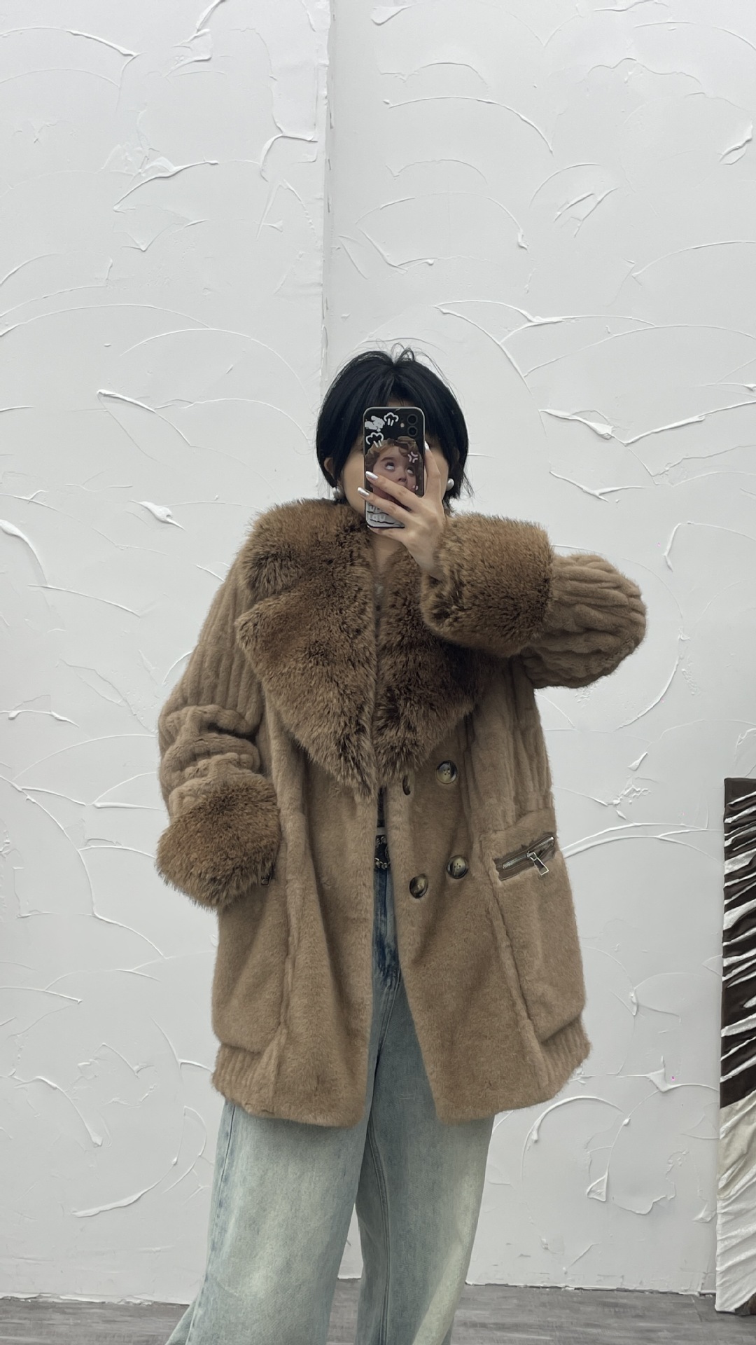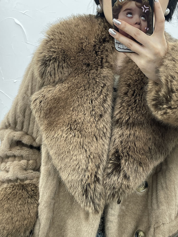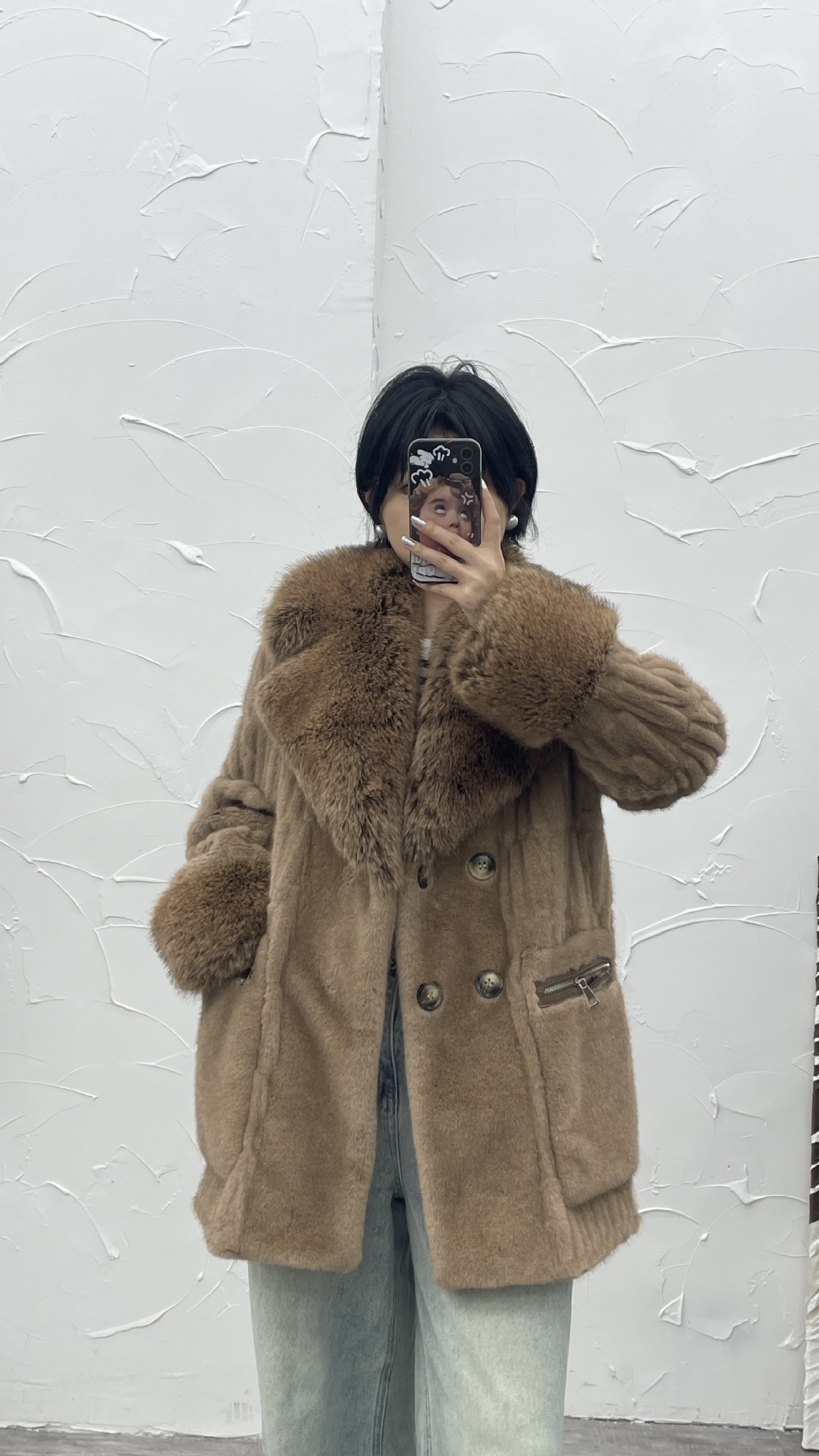 真滩羊毛兔内胆冬新款2025长款麂皮绒皮草时尚个性皮毛一体外套女