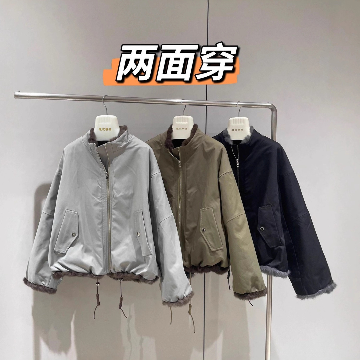 秋冬保暖兔毛两面穿派克服遮肚子显瘦韩版慵懒风暖阳短款夹克外套