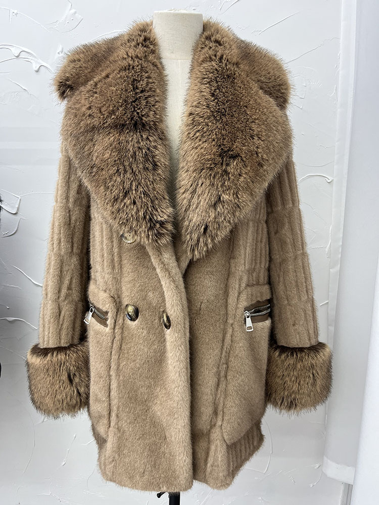 2025 新しい秋と冬の特大キツネの毛皮の襟ハイエンド両面ウールコート女性のミッドレングスルーズウールコート