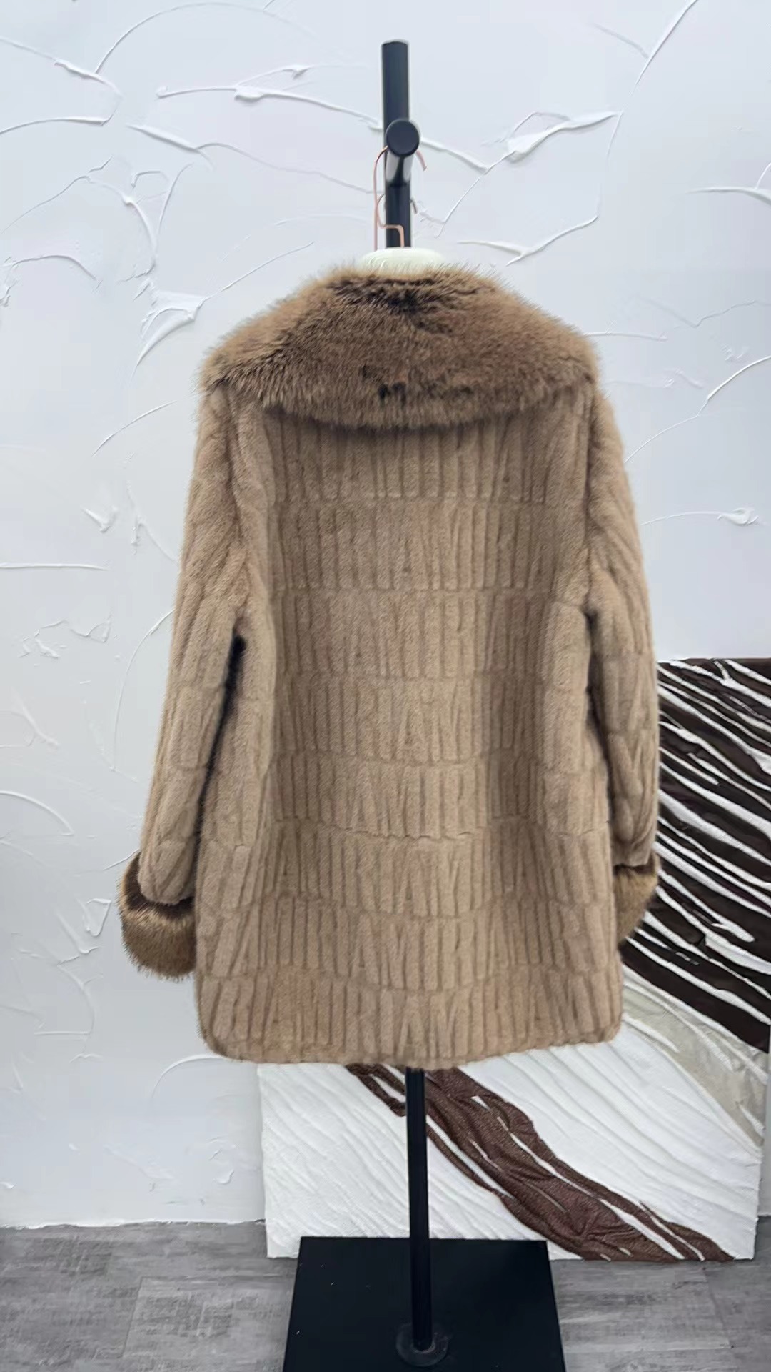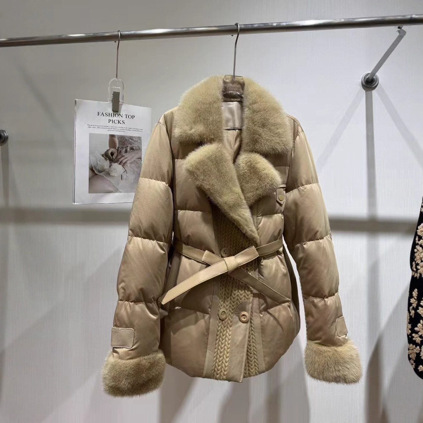欧货新款高端桑蚕丝白鹅羽绒服气质优雅女中长款水貂毛领皮草外套