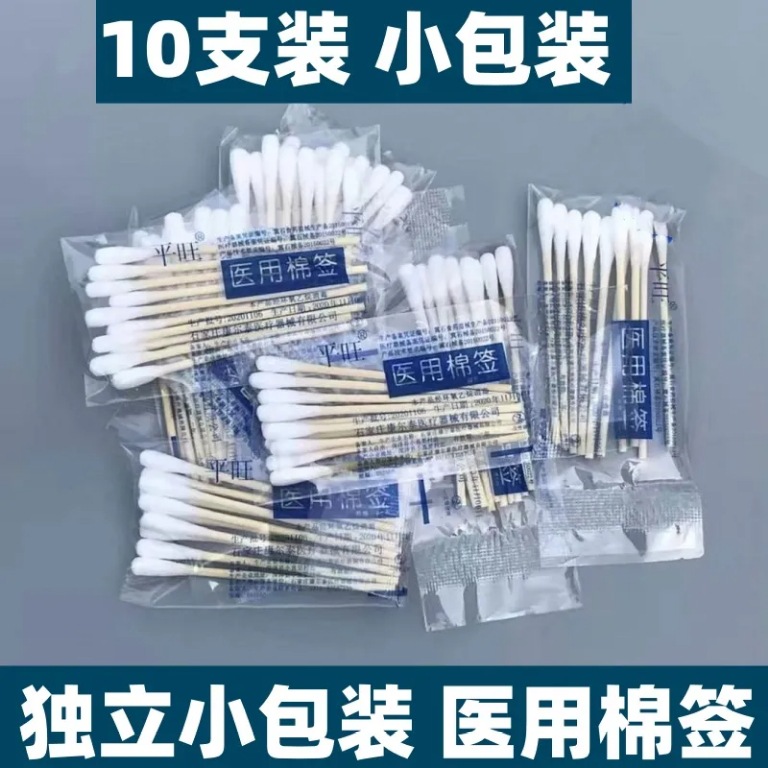 10本入り綿棒医療用綿棒使い捨て竹棒単頭綿棒小包装10本/バッグ