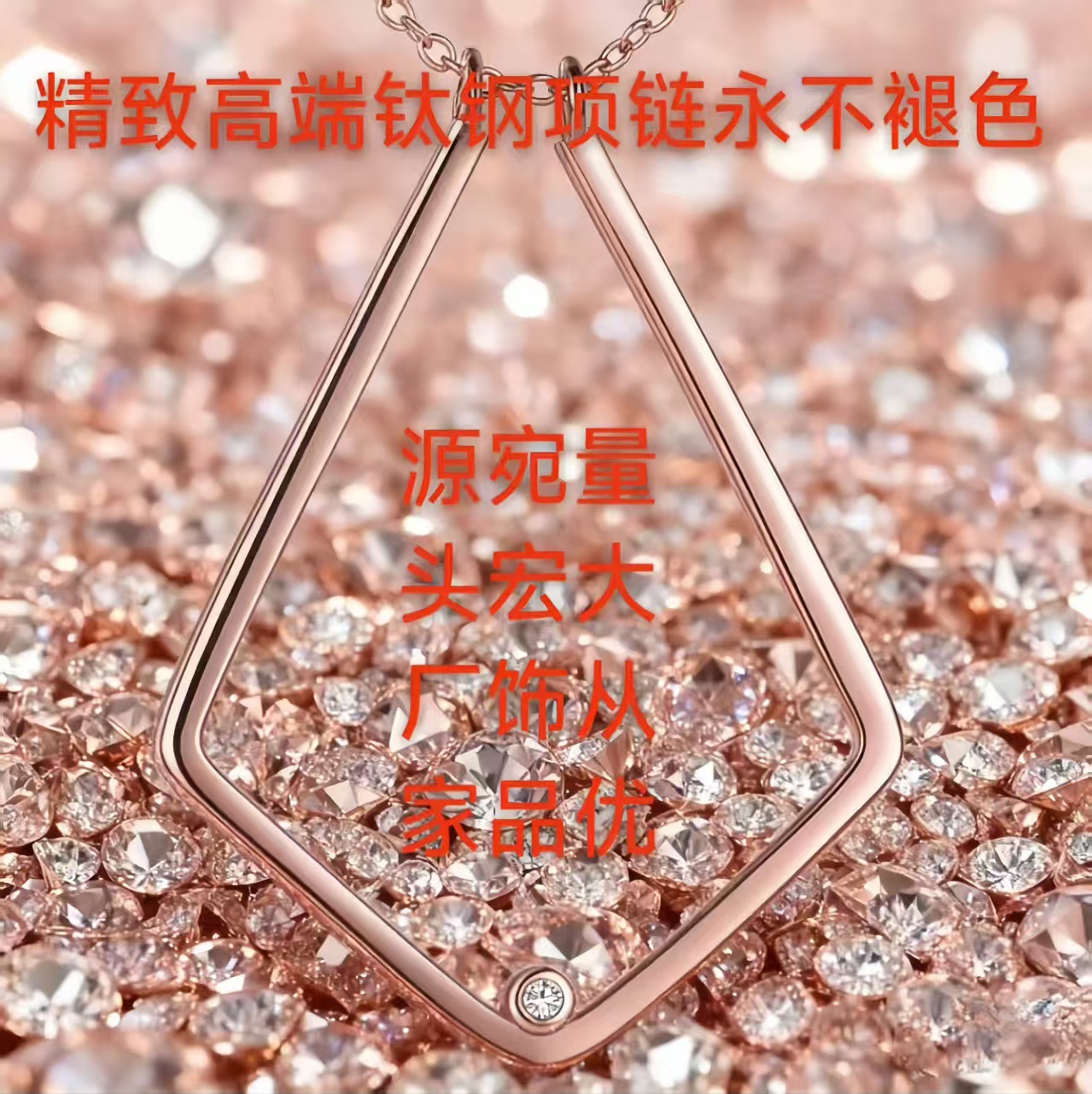 欧米向けチタン鋼ネックレス工場直販、新作ステンレス四角形メッキネックレス、女性用、色褪せなし